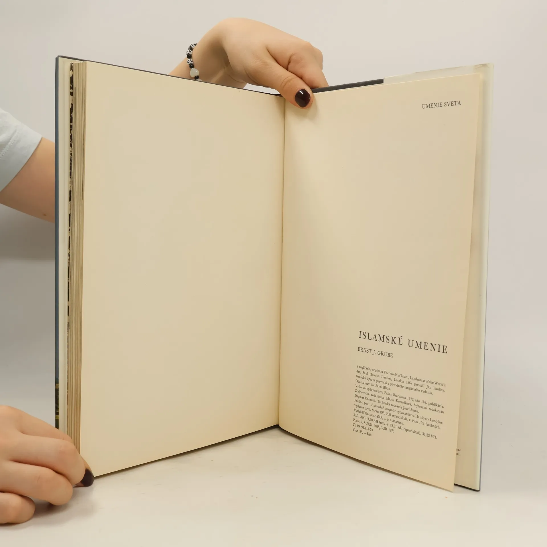 Architektúra, práce z kovu, maľba, koberce, rezby, keramika: V tejto publikácii nás dr. Grube oboznamuje s islamským svetom a jeho umením. Na bohatom ilustračnom materiáli môžeme obdivovať monumentálne mešity a paláce, štíhle minarety, prekrásne miniatúry a fascinujúce orientálne koberce...Vývoj islamského umenia začína dynastiou Umajovcov v 7. storočí a svoje prvky do neho postupne vniesli aj Peržania, Turci a arabskí obyvatelia, ktorí v Španielsku zanechali slávny palác Alhambra.