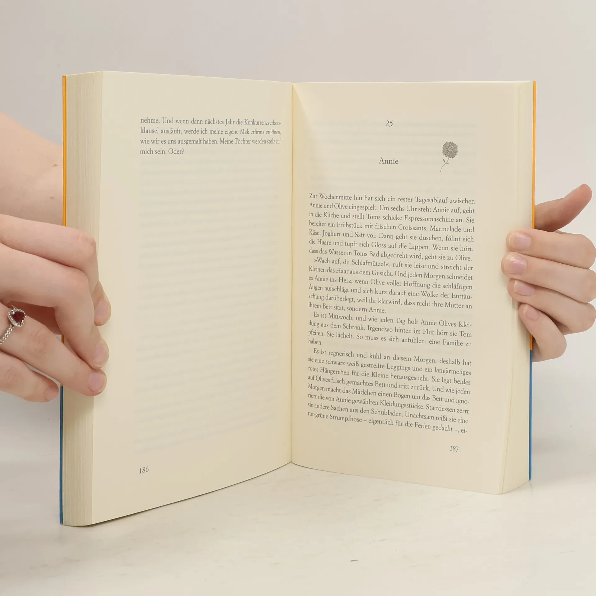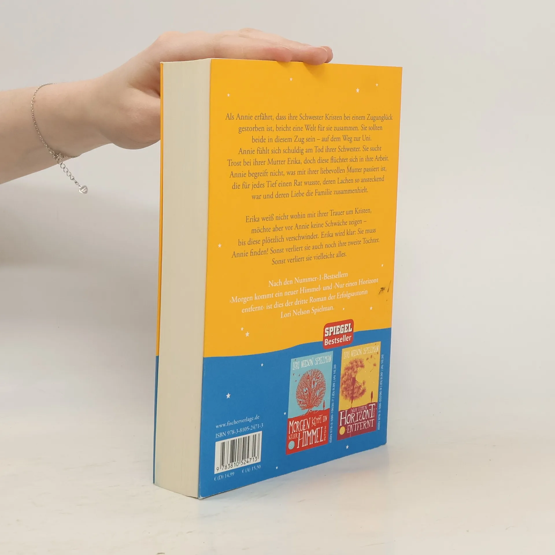Ein ergreifender und aufrüttelnder Bestseller von Lori Nelson Spielman, der Mut macht, sich auf die Suche nach dem Glück zu machen. Man weiß nie, wo man es finden wird. Als Annie erfährt, dass ihre Schwester Kristen bei einem Zugunglück gestorben ist, bricht eine Welt für sie zusammen. Sie sollten beide in diesem Zug sein – auf dem Weg zur Uni. Annie fühlt sich schuldig am Tod ihrer Schwester. Sie sucht Trost bei ihrer Mutter Erika, doch diese flüchtet sich in ihre Arbeit. Annie begreift nicht, was mit ihrer liebevollen Mutter passiert ist, die für jedes Tief einen Rat wusste, deren Lachen so ansteckend war und deren Liebe die Familie zusammenhielt. Erika weiß nicht wohin mit ihrer Trauer um Kristen, möchte aber vor Annie keine Schwäche zeigen – bis diese plötzlich verschwindet. In ihrer Verzweiflung denkt sie immer wieder an eine Lebensweisheit ihrer Mutter „Verwechsle niemals das, was wichtig ist, mit dem, was wirklich zählt“. Erika wird klar: Sie muss Annie finden! Sonst verliert sie auch noch ihre zweite Tochter. Sonst verliert sie vielleicht alles. Endlich – der dritte herzergreifende Roman von Weltbestsellerautorin Lori Nelson Spielman! Nach den Erfolgsromanen ›Morgen kommt ein neuer Himmel‹ und ›Nur einen Horizont entfernt‹ kommt mit ›Und nebenan warten die Sterne‹ ein neuer bewegender Roman für alle Mütter, Töchter und Schwestern, der jede Leserin begeistern wird.