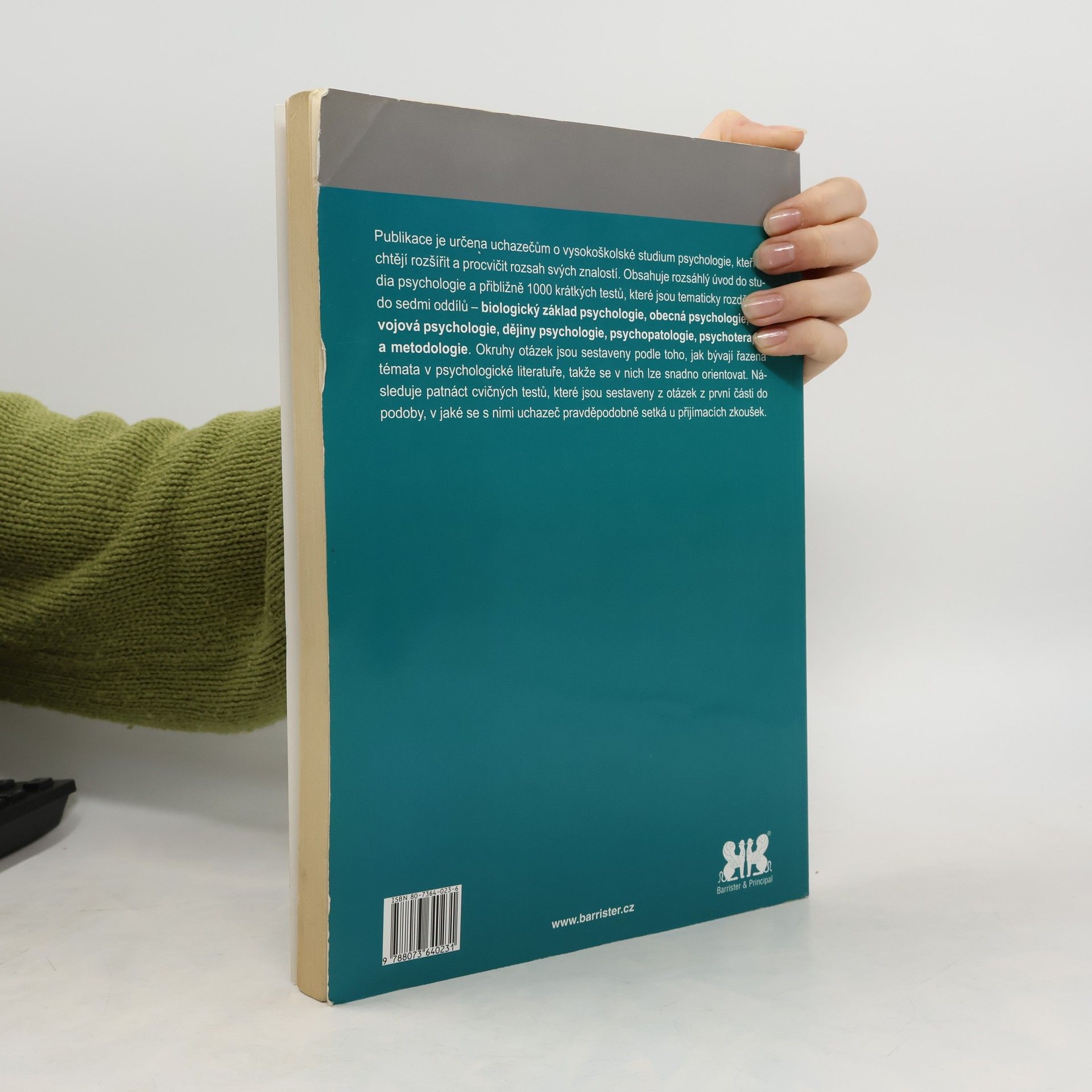 Publikace je určena uchazečům o vysokoškolské studium psychologie, kteří si chtějí rozšířit a procvičit rozsah svých znalostí. Obsahuje rozsáhlý úvod do studia psychologie a přibližně 1000 krátkých testů, které jsou tematicky rozděleny do sedmi oddílů – biologický základ psychologie, obecná psychologie, vývojová psychologie, dějiny psychologie, psychopatologie, psychoterapie a metodologie. Okruhy otázek jsou sestaveny podle toho, jak bývají řazena témata v psychologické literatuře, takže se v nich lze snadno orientovat. Následuje patnáct cvičných testů, které jsou sestaveny z otázek z první části do podoby, v jaké se s nimi uchazeč pravděpodobně setká u přijímacích zkoušek.