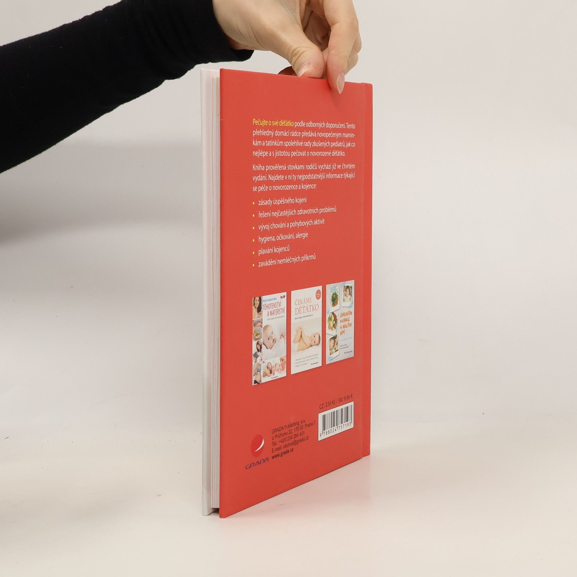Hledáte spolehlivou radu a pomoc při péči o novorozené děťátko? Tato příručka českých odborníků vám ji poskytne. Přehledný rádce pro novopečené maminky si získal velkou oblibu a nyní vychází již ve čtvrtém vydání. Spolehněte se na praktické, odborné a zároveň empatické rady zkušených pediatrů. Narození děťátka s sebou přináší radost i mnoho tušených, ale i naprosto nečekaných starostí a otázek. Kniha českých odborníků vás bezpečně provede prvními měsíci života vašeho potomka a zodpoví nejčastější dotazy týkající se péče o zdraví miminka, kojení, očkování, hygieny a všech potřeb vašeho maličkého. Příručka, kterou zvládnete přečíst, ještě než se s novorozencem vrátíte z porodnice, vám pomůže být sebevědomou a dobrou maminkou.