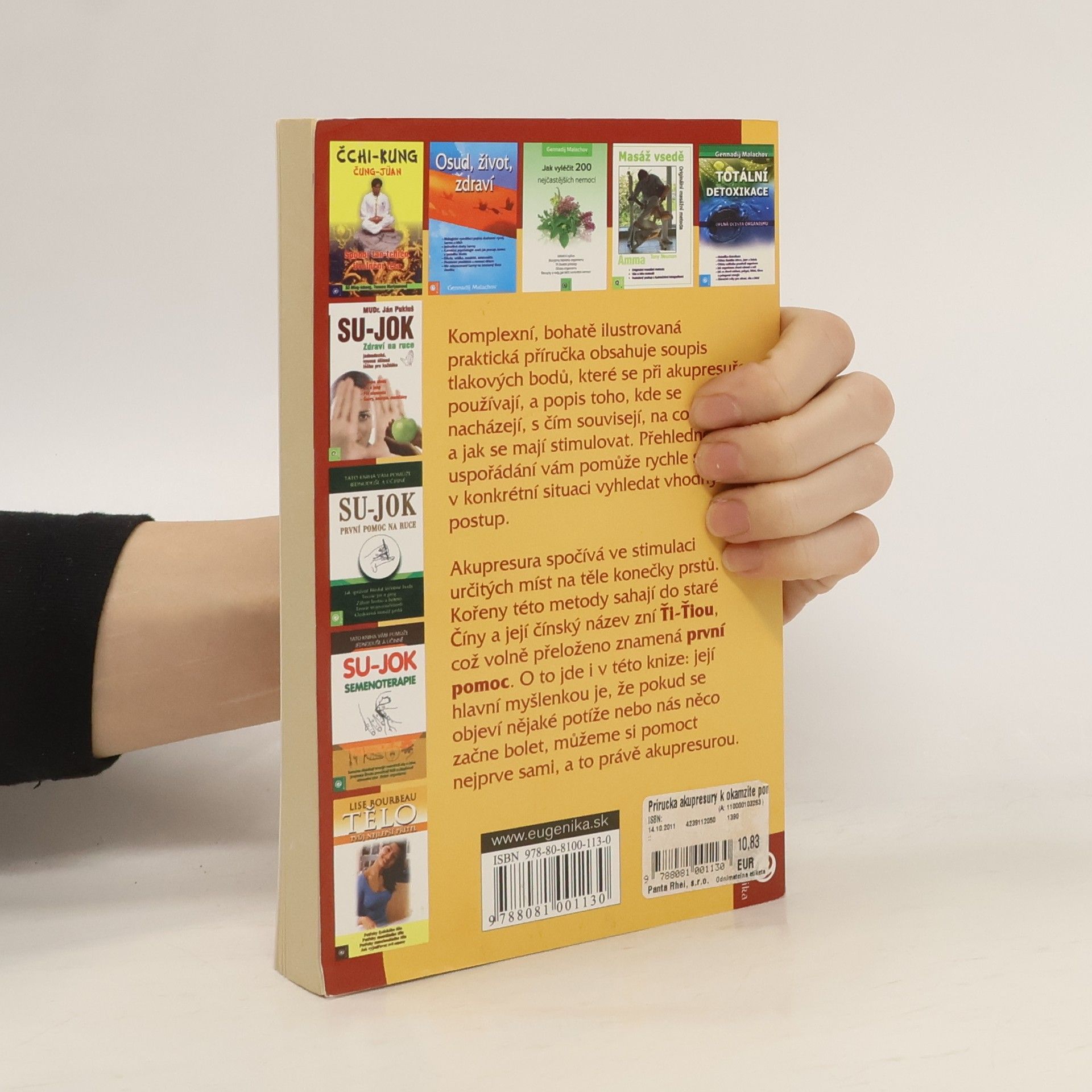 Komplexní ilustrovaná praktická příručka obsahuje soupis tlakových bodů, které se při akupresuře používají, a popis toho, kde se nacházejí, s čím souvisejí, na co působí a jak se mají stimulovat. Přehledné uspořádání vám pomůže rychle si v konkrétní situaci vyhledat vhodný postup.