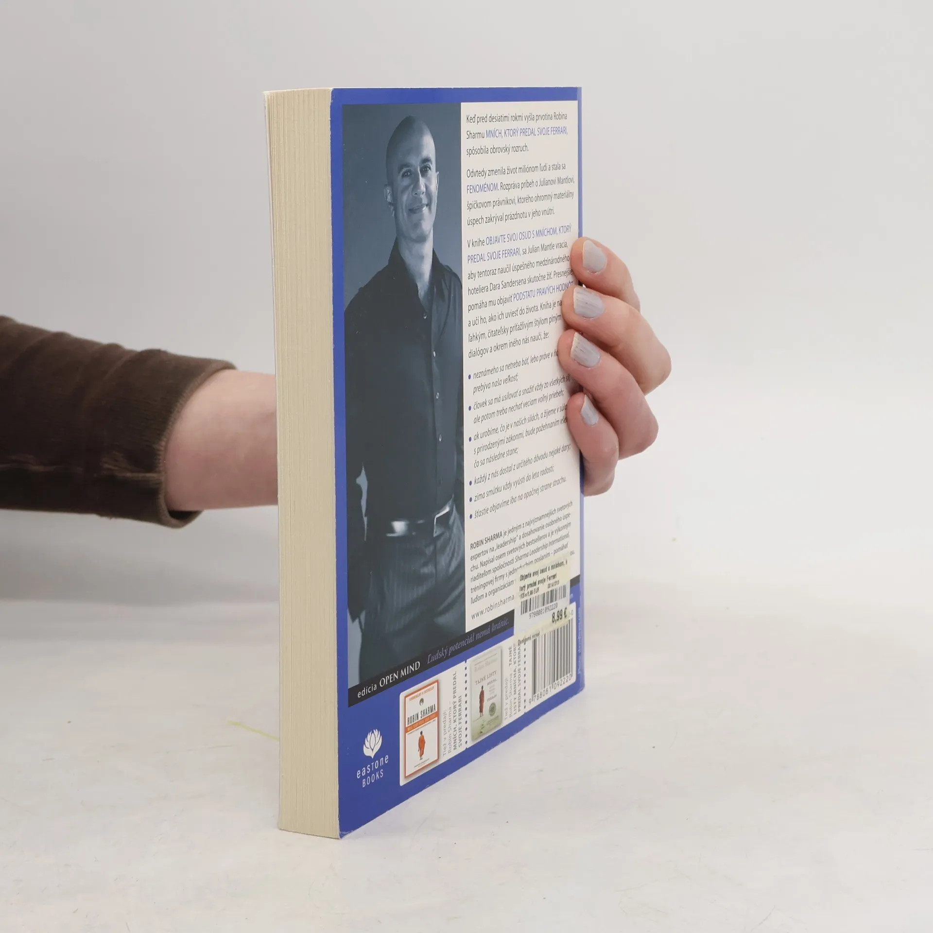 Keď pred desiatimi rokmi vyšla prvotina Robina Sharmu Mních, ktorý predal svoje Ferrari, spôsobila obrovský rozruch. Odvtedy zmenila život miliónom ľudí a stala sa fenoménom. Rozpráva príbeh o Julianovi Mantlovi, špičkovom právnikovi, ktorého ohromný materiálny úspech zakrýval prázdnotu v jeho vnútri. V knihe Objavte svoj osud s mníchom, ktorý predal svoje Ferrari, sa Julian Mantle vracia, aby tentoraz naučil úspešného medzinárodného hoteliera Dara Sandersena skutočne žiť. Presnejšie, Julian Darovi pomáha objaviť podstatu pravých hodnôt a učí ho, ako ich uviesť do života. Kniha je napísaná ľahkým, čitateľsky príťažlivým štýlom plným dialógov a aktuálnych postrehov. Kniha nás na konkrétnych príkladoch naučí, že: neznámeho sa netreba báť, lebo práve v ňom prebýva naša veľkosť; človek sa má usilovať a snažiť vždy zo všetkých síl, ale potom nechať veciam voľný priebeh a dať životu čas, aby urobil ostatné; ak zmeníme pud prežiť na odhodlanie slúžiť pravde a životu, náš život bude vždy úspešný... a mnoho ďalších vecí.