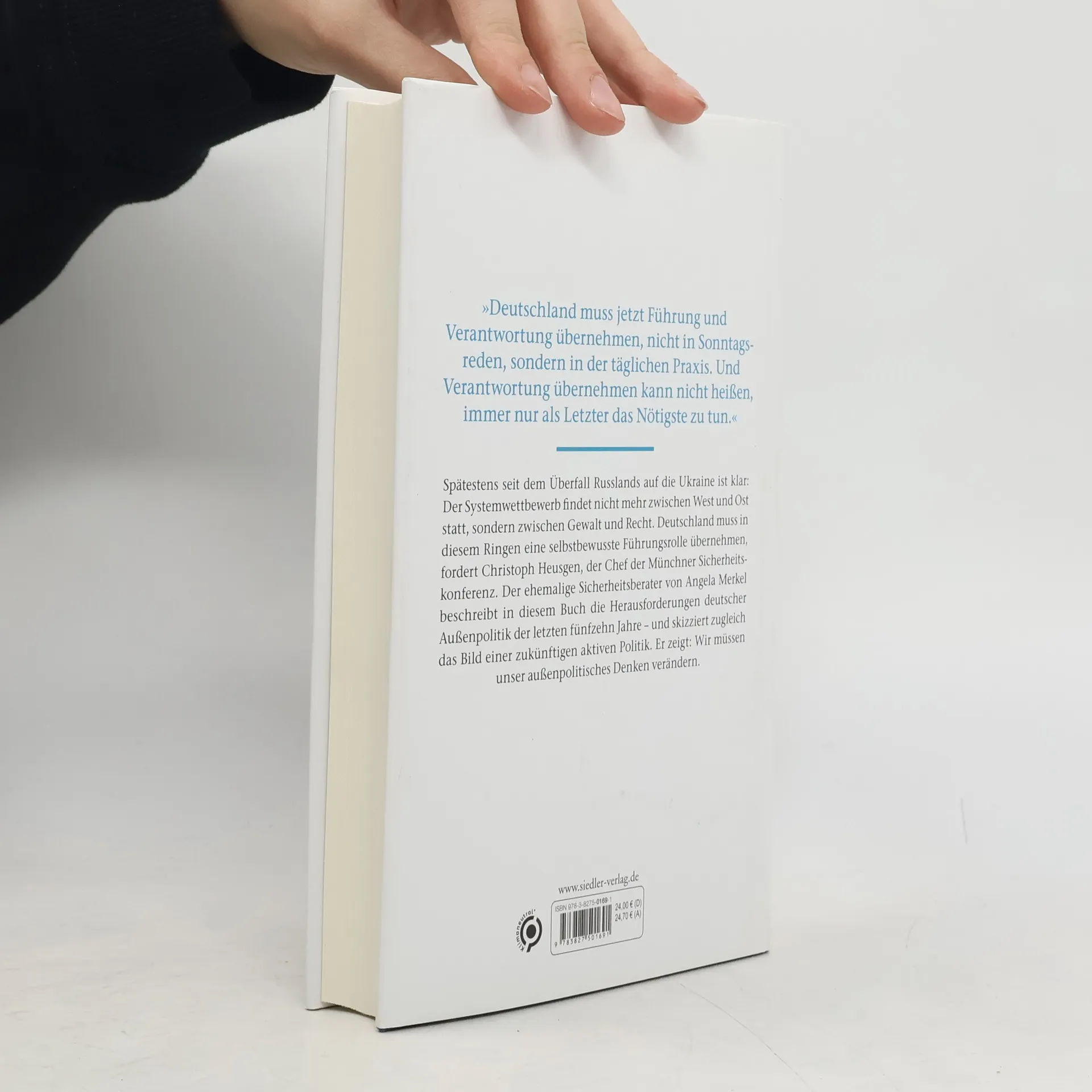Der Chef der Münchner Sicherheitskonferenz über Deutschlands neue Rolle in der Welt Christoph Heusgen, seit Februar 2022 Chef der Münchener Sicherheitskonferenz, zeigt in seinem Buch, was geschehen muss, damit Deutschland eine neue, aktive Rolle in der Welt spielen kann. Der ehemalige Sicherheitsberater von Angela Merkel und UNO-Botschafter von 2017 bis 2021 hat die deutsche Außenpolitik der letzten fünfzehn Jahre begleitet wie kaum ein anderer - angesichts der Zeitenwende durch den Ukraine-Krieg plädiert er nun für einen neuen deutschen Kurs in der Außenpolitik. Sehr persönlich und dabei intellektuell stets anregend beschreibt er die Herausforderungen und Weichenstellungen unter Angela Merkels Kanzlerschaft - und skizziert zugleich das Bild einer zukünftigen aktiven Politik. Wir müssen unser außenpolitisches Denken verändern: Denn der Systemwettbewerb findet nicht mehr zwischen West und Ost statt, sondern zwischen Gewalt und Recht. Und Deutschland muss in diesem Ringen eine selbstbewusste Führungsrolle übernehmen.