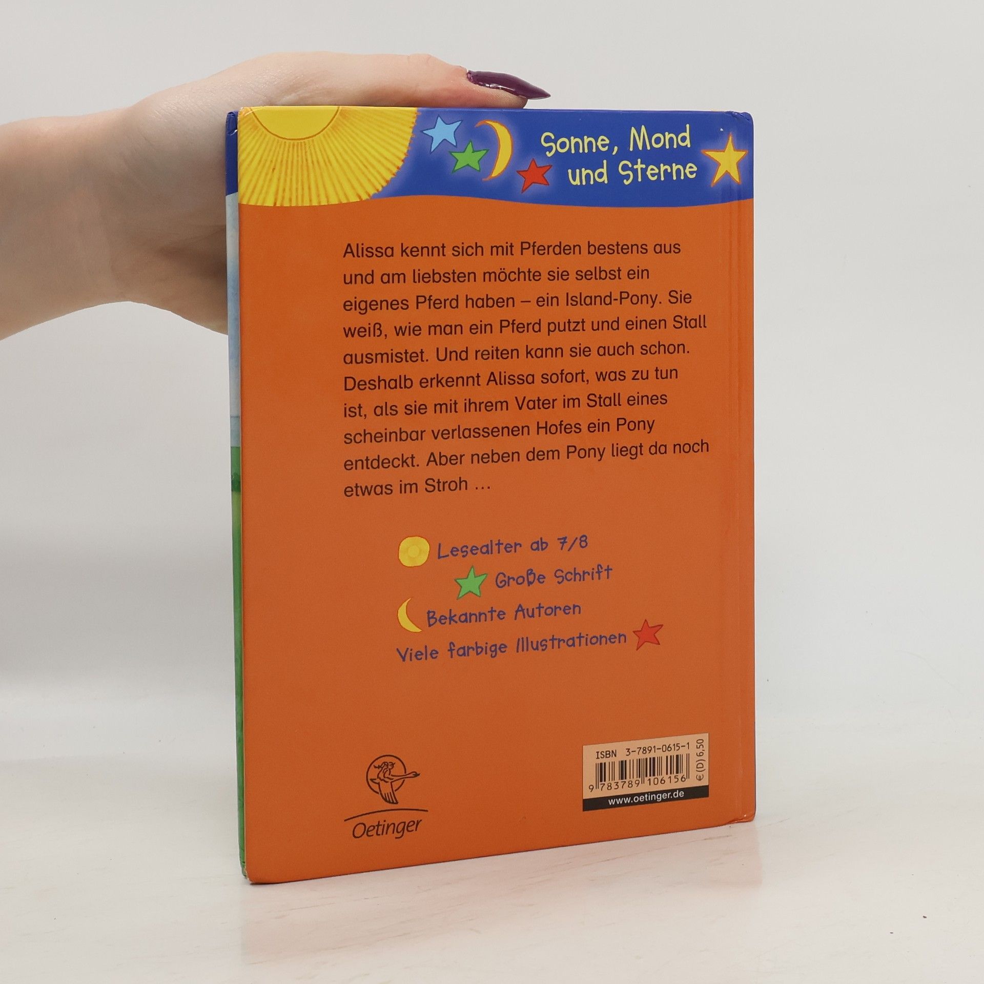 Ponys sind das Allerschönste auf der Welt! Alissa liebt Pferde über alles. Am liebsten möchte sie ein eigenes Pferd haben - ein Island-Pony. Sie weiß, wie man ein Pferd putzt und einen Stall ausmistet. Reiten kann sie auch schon. Und weil sie sich so gut auskennt, weiß sie sofort, was zu tun ist, als sie gemeinsam mit ihrem Vater im Stall eines scheinbar verlassenen Hofes ein Pony entdeckt. Aber neben dem Pony liegt noch etwas im Stroh … Der erste Band von Alissa und dem kleinen Pony Fleck - mit vielen Informationen über Pferde.