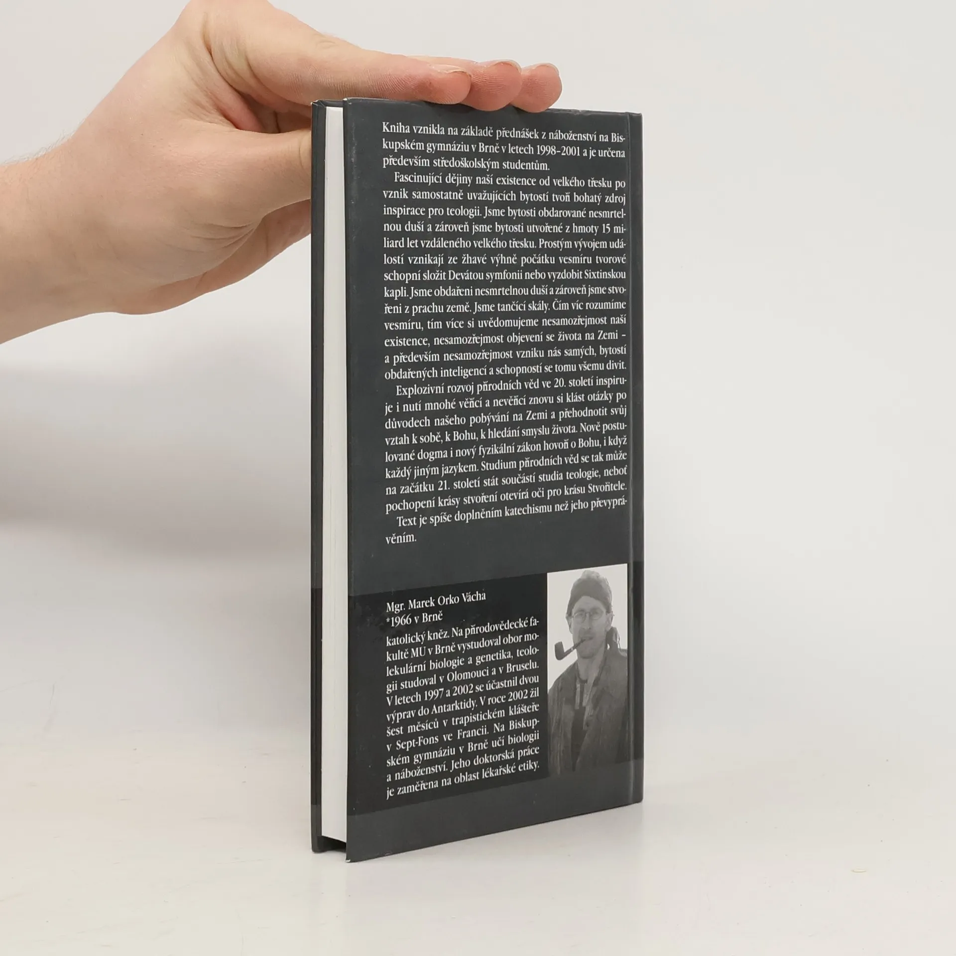Kniha vznikla na základě přednášek z náboženství na Biskupském gymnáziu v Brně v letech 1998 – 2001 a je určena především středoškolským studentům. Fascinující dějiny naší existence od velkého třesku po vznik samostatně uvažujících bytostí tvoří bohatý zdroj inspirace pro teologii. Jsme bytosti obdarované nesmrtelnou duší a zároveň jsme bytosti utvořené z hmoty 15 miliard let vzdáleného velkého třesku. Prostým vývojem událostí vznikají ze žhavé výhně počátku vesmíru tvorové schopní složit Devátou symfonii nebo vyzdobit Sixtinskou kapli. Jsme obdařeni nesmrtelnou duší a zároveň jsme stvořeni z prachu země. Jsme tančící skály. Čím víc rozumíme vesmíru, tím více si uvědomujeme nesamozřejmost naší existence, nesamozřejmost objevení se života na Zemi – a především nesamozřejmost vzniku nás samých, bytostí obdařených inteligencí a schopností se tomu všemu divit. Explozivní rozvoj přírodních věd ve 20. století inspiruje i nutí mnohé věřící a nevěřící znovu si klást otázky po důvodech našeho pobývání na Zemi a přehodnotit svůj vztah k sobě, k Bohu, k hledání smyslu života. Nově postulované dogma i nový fyzikální zákon hovoří o Bohu, i když každý jiným jazykem. Studium přírodních věd se tak může na začátku 21. století stát součástí studia teologie, neboť pochopení krásy stvoření otevírá oči pro krásu Stvořitele. Text je spíše doplněním katechismu než jeho převyprávěním.