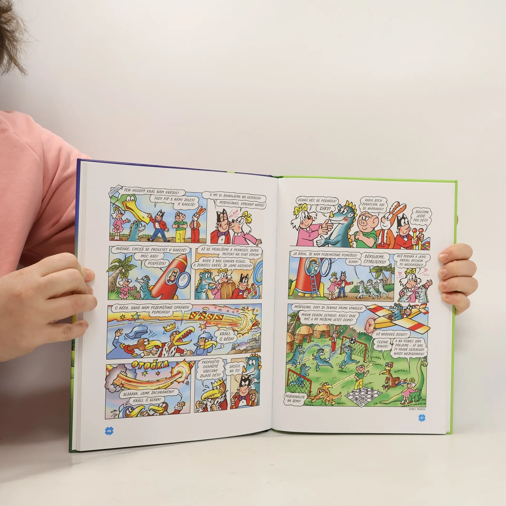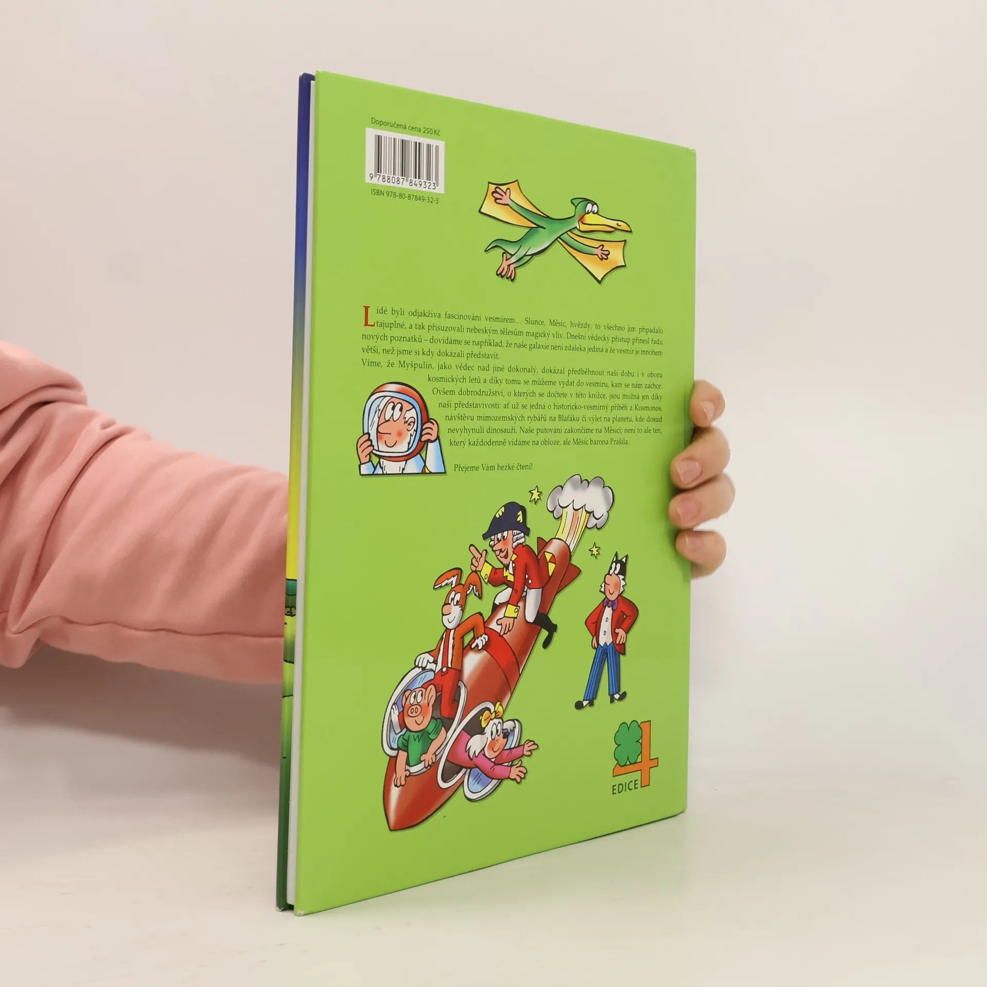 V pořadí desátá čtyřlístková kniha z edice 4. Tentokrát bude mít Čtyřlístek co do činění s vesmírem. Na rybníku Blaťáku se setká s mimozemšťany, v Kosmonosech objeví dávného kosmonauta, zaletí si na vzdálenou planetu dinosaurů a potká se dokonce se slovutným baronem Prášilem. Obsahuje komiksy: Mimozemšťané na Blaťáku - Jaroslav Němeček, Jaroslav Němeček Kosmonos z kosmonmos - Hana Lamková, Jaroslav Němeček Planeta dinosaurů - Radim Krajčovič, Jaroslav Němeček Výlet na měsíc - Jiří Poborák, Jaroslav Němeček