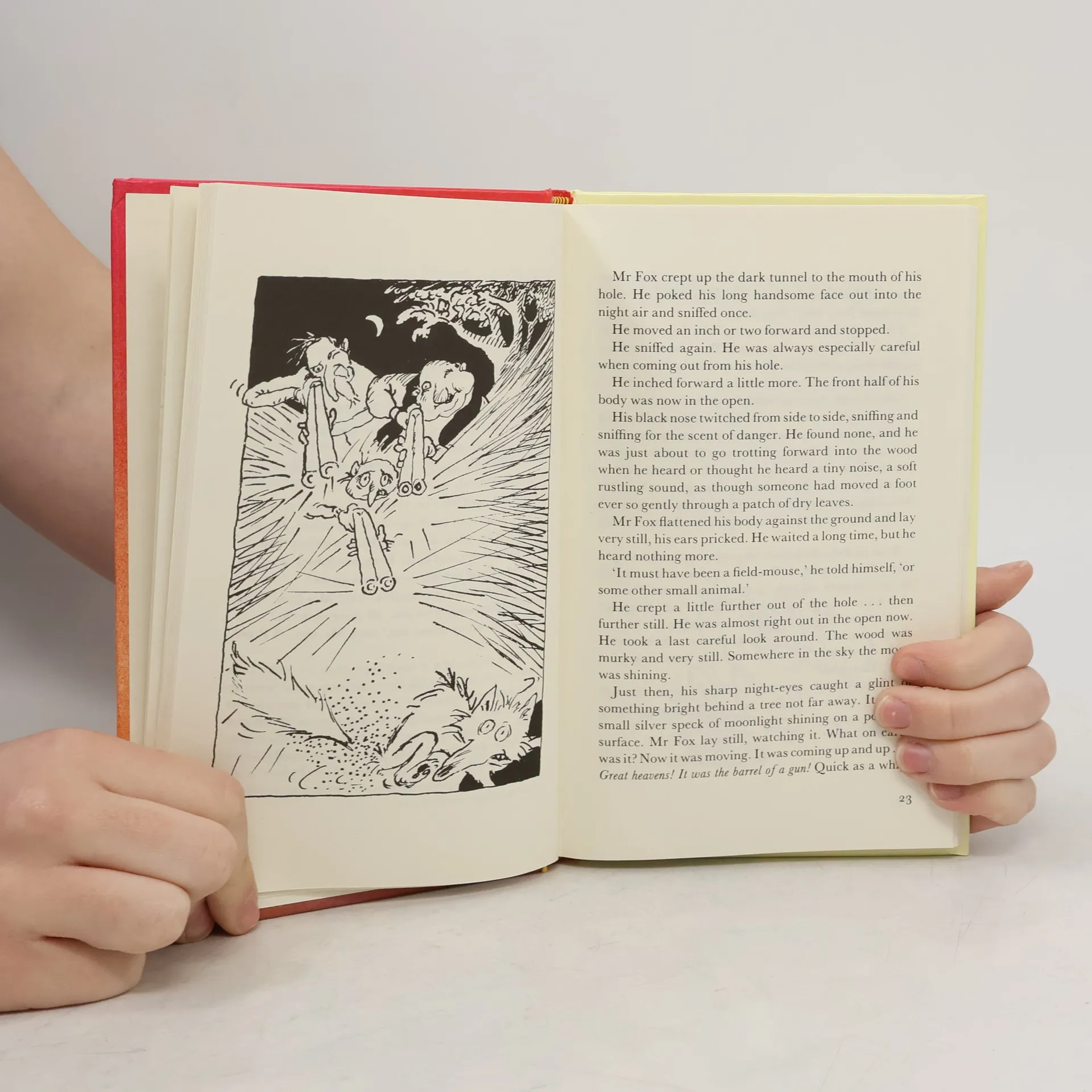 Mr Fox lives on a hill under a huge tree with his family, and helps himself to chickens and turkeys from the local farms. This story tells how the Farmers Boggis, Bean and Bunce try to get rid of Mr Fox, and how Mr Fox outwits them all and triumphs in the end.