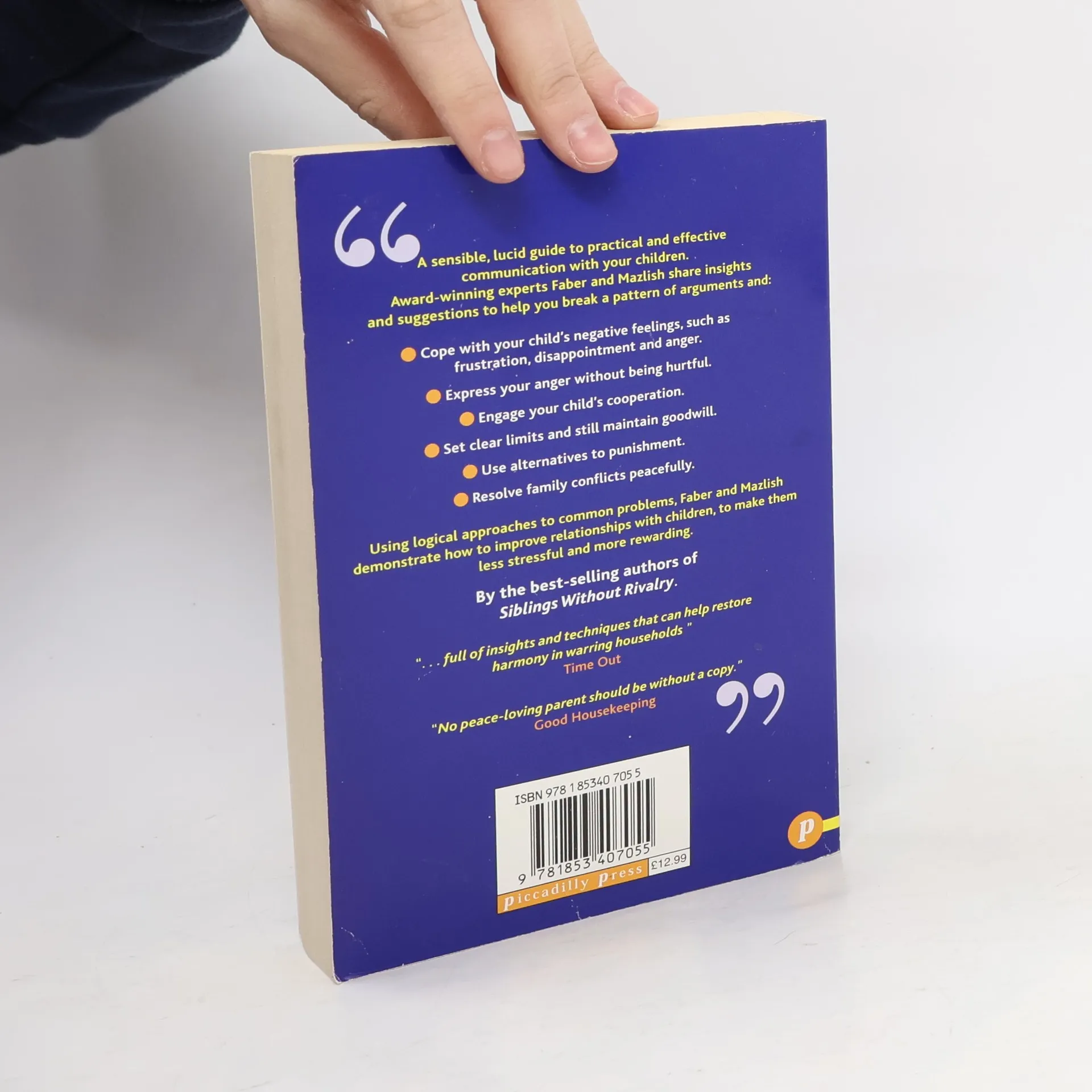 Get your kids' cooperation...without arguing. Morning hassles and bedtime battles disappear when you apply the communication techniques these experts have been teaching parents nationwide. Even if you've felt you had no other alternative than to lecture or criticize, you'll be able to reduce the wear and tear on yourself and your family with this practical program. Adele Faber and Elaine Mazlish -- once frustrated mothers themselves -- use real-life situations to show how you can respect and respond to your child's feelings and satisfy your own needs. You'll learn Avoid turning simple conversations into arguments Instruct rather than criticize when correcting your child Choose effective alternatives to punishment Show your child how to make amends Allow him to experience the direct consequences of his actions See immediate changes in your relationship with your children -- changes that will mean the difference between bad feelings and good ones; between fighting and loving.