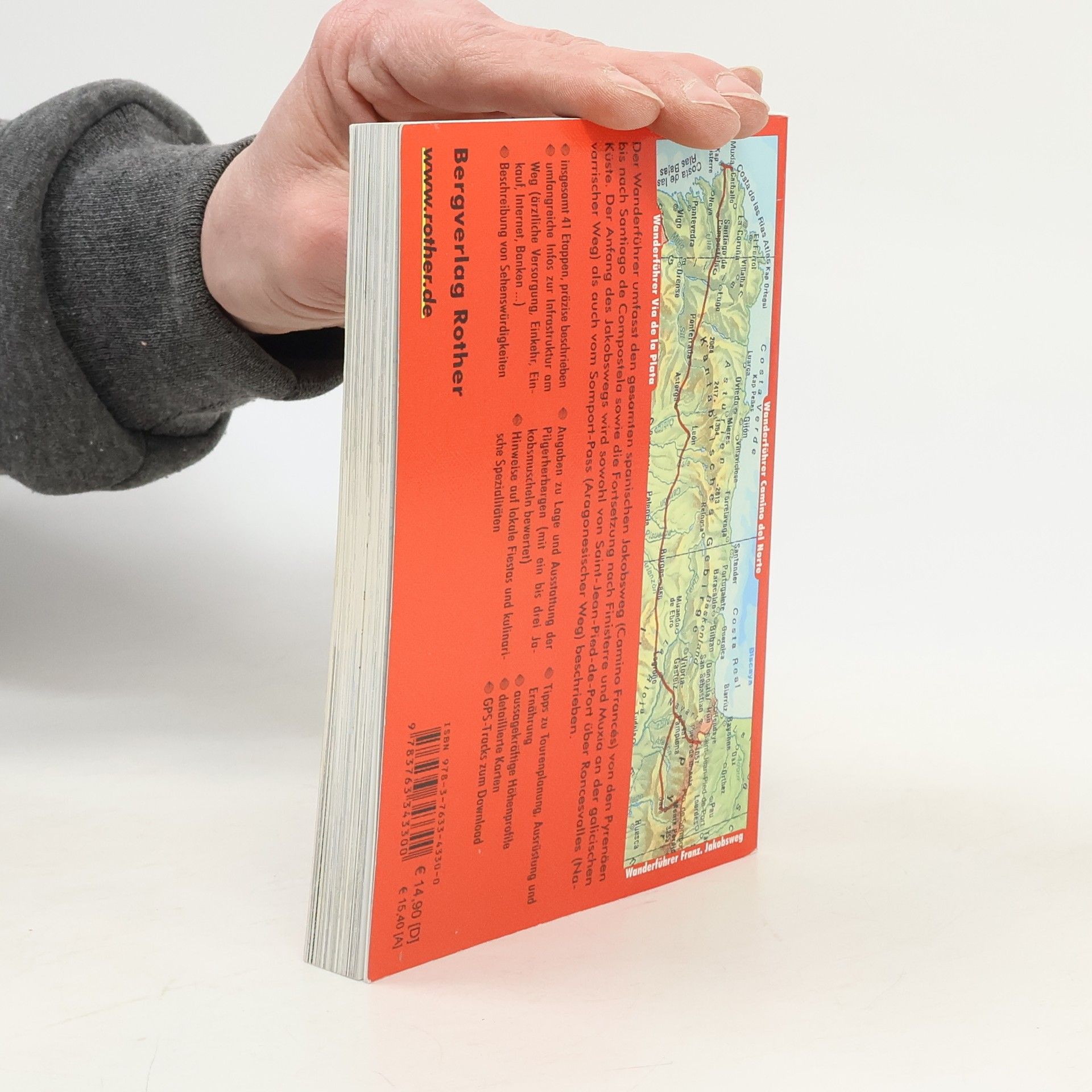 Reich illustrierter Wanderführer, der den spanischen Jakobsweg (Camino francés) von den Pyrenäen bis nach Santiago de Compostela (inklusive Weiterführung nach Finisterre bzw. Muxia) in 41 Etappen darstellt.