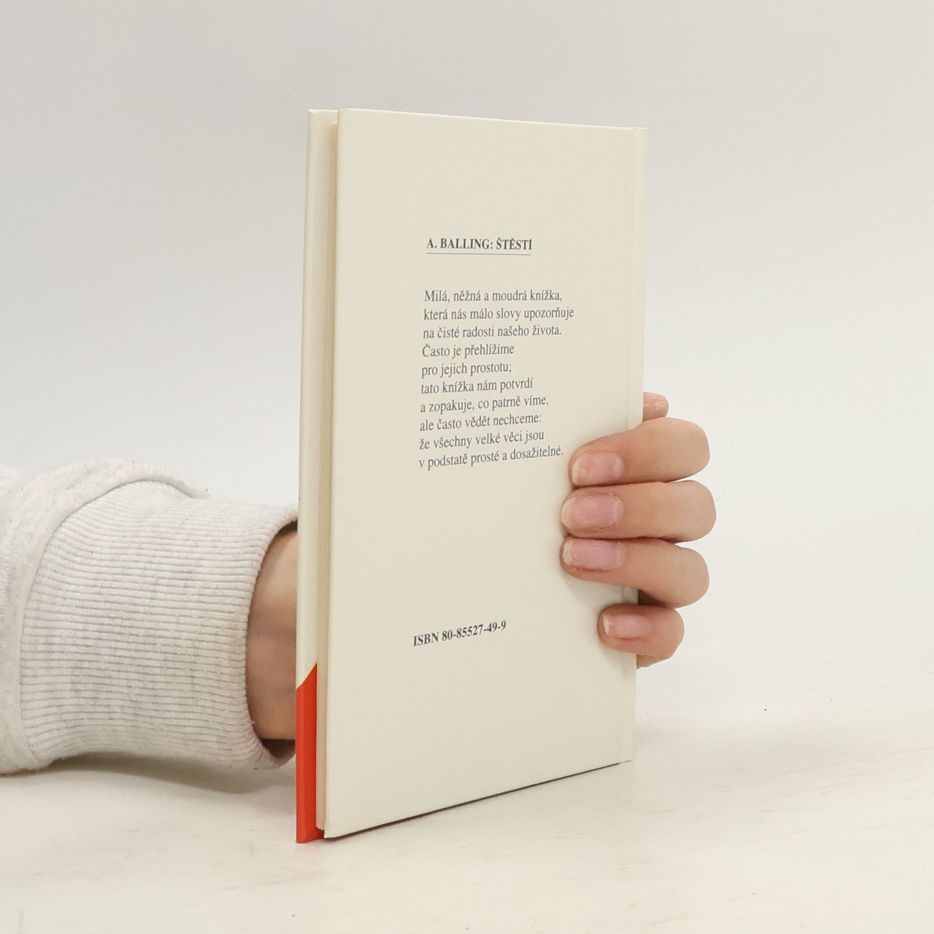 Milá, něžná a moudrá knížka, která nás málo slovy upozorňuje na čisté radosti našeho života.Často je přehlížíme pro jejich prostotu.Tato knížka nám potvrdí a zopakuje, co patrně víme, ale často vědět nechceme:Že všechny velké věci jsou v podstatě prosté a dosažitelné.
