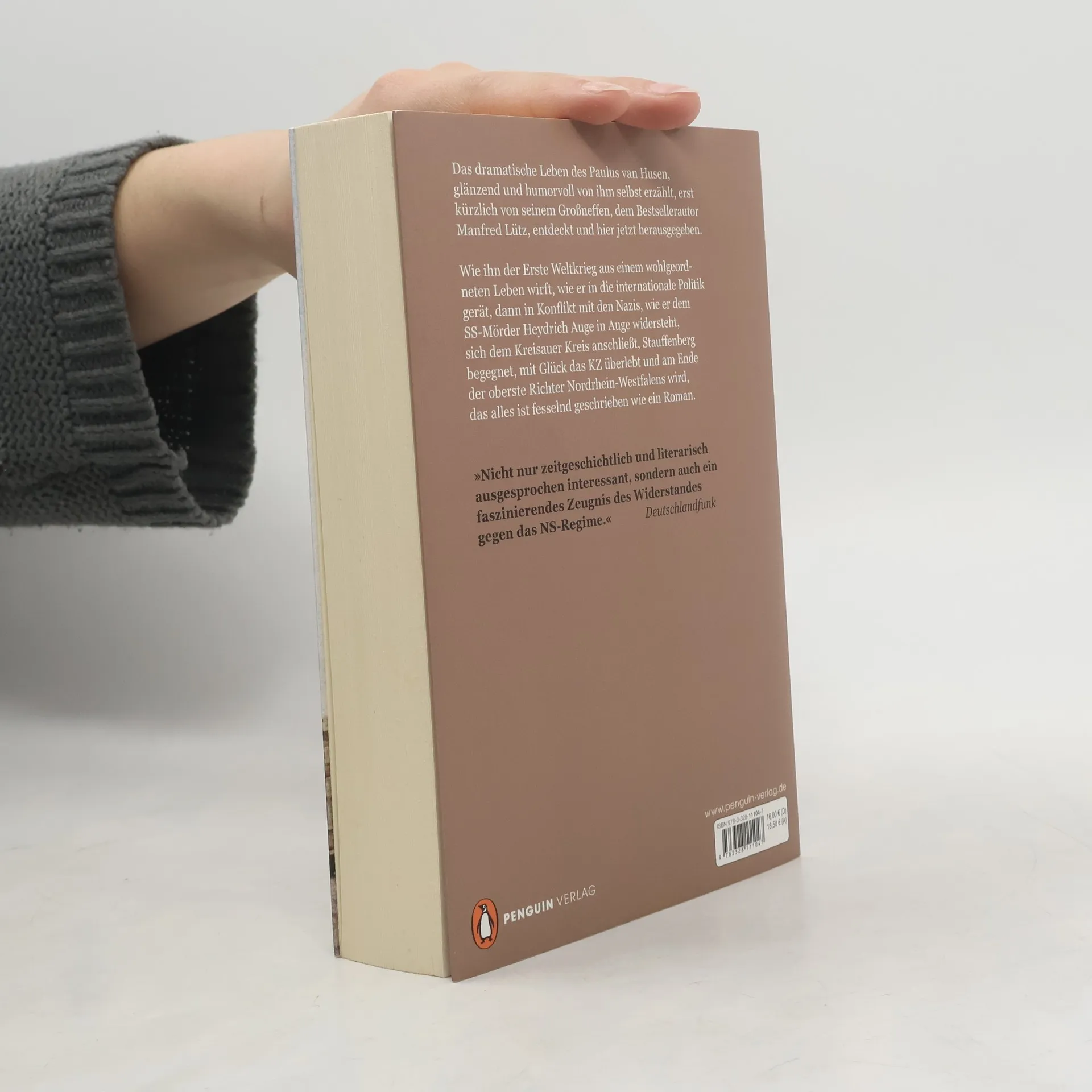Die fesselnde Autobiografie eines NS-Widerständlers, entdeckt und herausgegeben von Bestsellerautor Manfred Lütz Manfred Lütz hat die zeitgeschichtlich bedeutsame Autobiografie seines Großonkels entdeckt und herausgegeben. Als Mitglied des Kreisauer Kreises fühlt sich Paulus van Husen von seinem Gewissen aufgerufen, Widerstand gegen die NS-Diktatur zu leisten, auch unter Einsatz des Lebens. In seinen Erinnerungen schildert Paulus von Husen, wie ihn der Erste Weltkrieg aus seinem wohlgeordneten Leben wirft, wie er in die internationale Politik und nach 1933 in Konflikt mit den Nazis gerät. Er erzählt, wie er Claus Schenk Graf von Stauffenberg begegnet, nach dem missglückten Attentat auf Adolf Hitler verhaftet wird und die Gestapo-Verhöre und das KZ mit Glück und Geschick überlebt. Nach dem Ende des Zweiten Weltkriegs wird Paulus von Husen schließlich der erste Verfassungsgerichtspräsident Nordrhein-Westfalens, seine fesselnde Lebensgeschichte liest sich wie ein Roman.