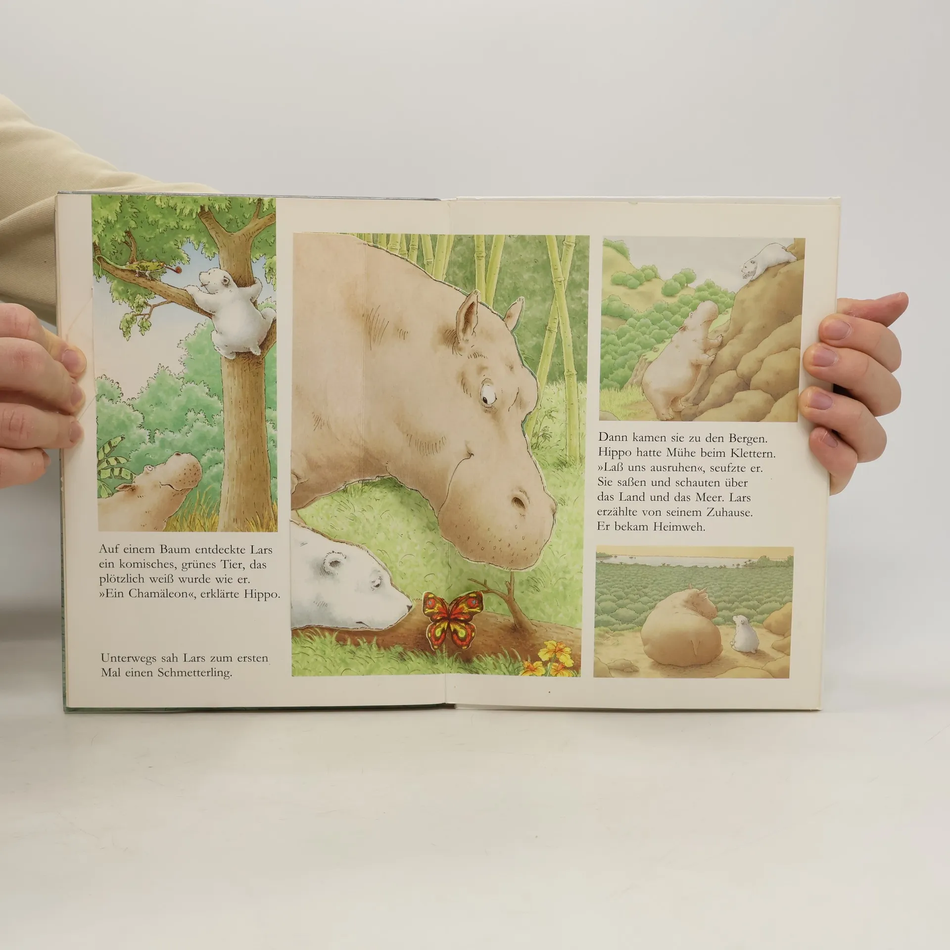 Ein kleiner weißer Eisbär treibt auf einer Eisscholle und auf einem Faß bis nach Afrika. Er entdeckt die seltsamsten Farben und lernt ein Flußpferd kennen. Auf dem Rücken eines Wals gelangt er in seine kühle Heimat zurück. Eine gemütvolle, heitere Tiergeschichte.