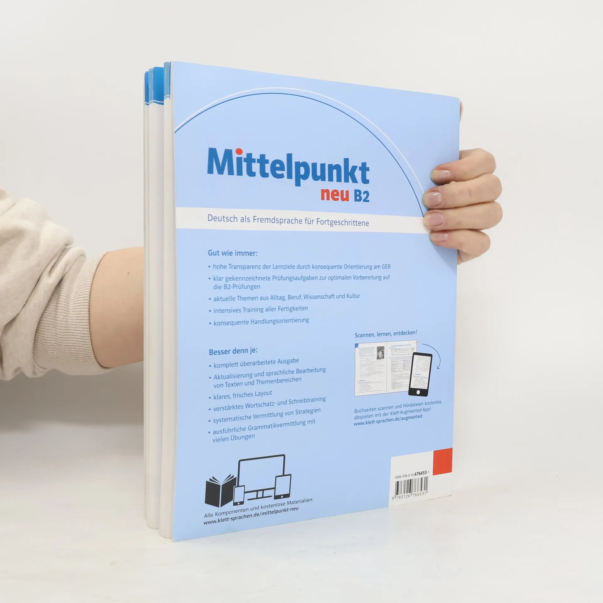 Gut wie immer: hohe Transparenz der Lernziele durch konsequente Orientierung am GER klar gekennzeichnete Prüfungsaufgaben zur optimalen Vorbereitung auf die B2-Prüfungen aktuelle Themen aus Alltag, Beruf, Wissenschaft und Kultur intensives Training aller Fertigkeiten konsequente Handlungsorientierung Besser denn je: komplett überarbeitete Ausgabe Aktualisierung und sprachliche Bearbeitung von Texten und Themenbereichen klares, frisches Layout verstärktes Wortschatz- und Schreibtraining systematische Vermittlung von Strategien ausführliche Grammatikvermittlung mit vielen Übungen