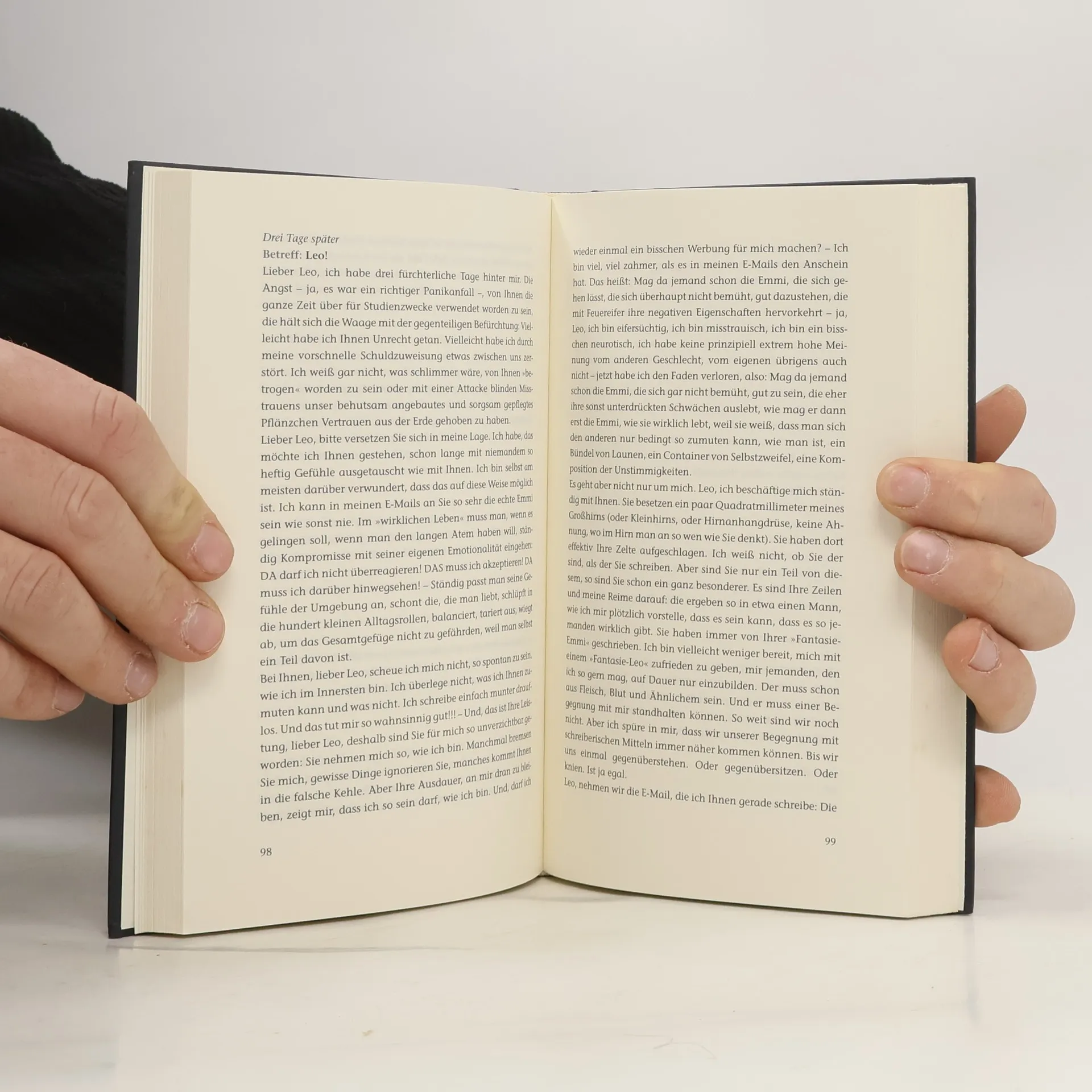 Emmi Rothner möchte per E-Mail ihr Abo der Zeitschrift „Like“ kündigen, doch durch einen Tippfehler landen ihre Nachrichten bei Leo Leike. Als Emmi wieder und wieder E-Mails an die falsche Adresse schickt, klärt Leo sie über den Fehler auf. Es beginnt ein außergewöhnlicher Briefwechsel, wie man ihn nur mit einem Unbekannten führen kann. Auf einem schmalen Grat zwischen totaler Fremdheit und unverbindlicher Intimität kommen sich die beiden immer näher – bis sie sich der unausweichlichen Frage stellen müssen: Werden die gesendeten, empfangenen und gespeicherten Liebesgefühle einer Begegnung standhalten? Und was, wenn ja?