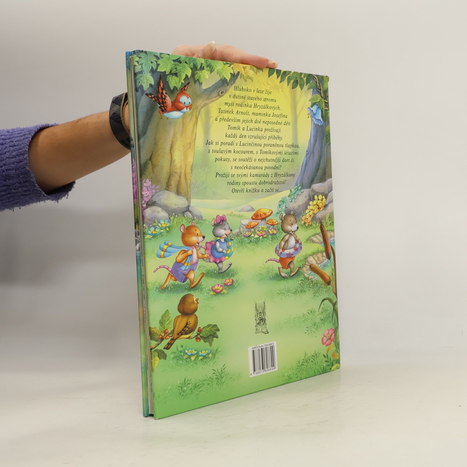 Hluboko v lese žije v dutině starého stromu myší rodinka Hryzálkových - tatínek Arnošt, maminka Josefína a především jejich dvě neposedné děti Tomík a Lucinka. Každý jejich den je plný vzrušujících příběhů a vaše děti je nyní mohou díky této krásně ilustrované knížce prožívat spolu s nimi. Příběhy myší rodinky pro nejmenší