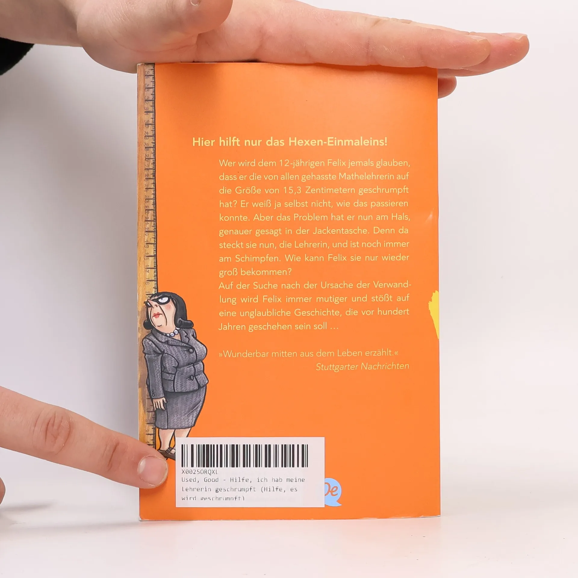 Wer wird dem 12-jährigen Felix jemals glauben, dass er die von allen gehasste Mathelehrerin au f eine Größe von 15,3 Zentimetern geschrumpf t hat? Er weiß ja selbst nicht, wie es passiert ist! Aber das Problem hat er nun am Hals, genauer gesagt in der Jackentasche. Denn da steckt sie nun und schimpft. Wie kriegt Felix sie nur wieder groß?