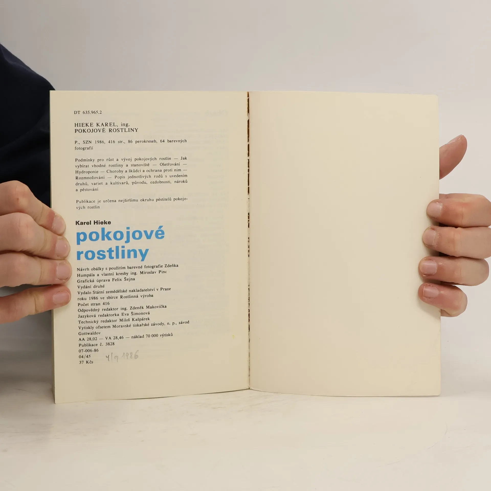 Publikace je určena nejširšímu okruhu pěstitelů pokojových rostlin. Vydání druhé, 416 str., 86 perokreseb, 64 barevných fotografií.