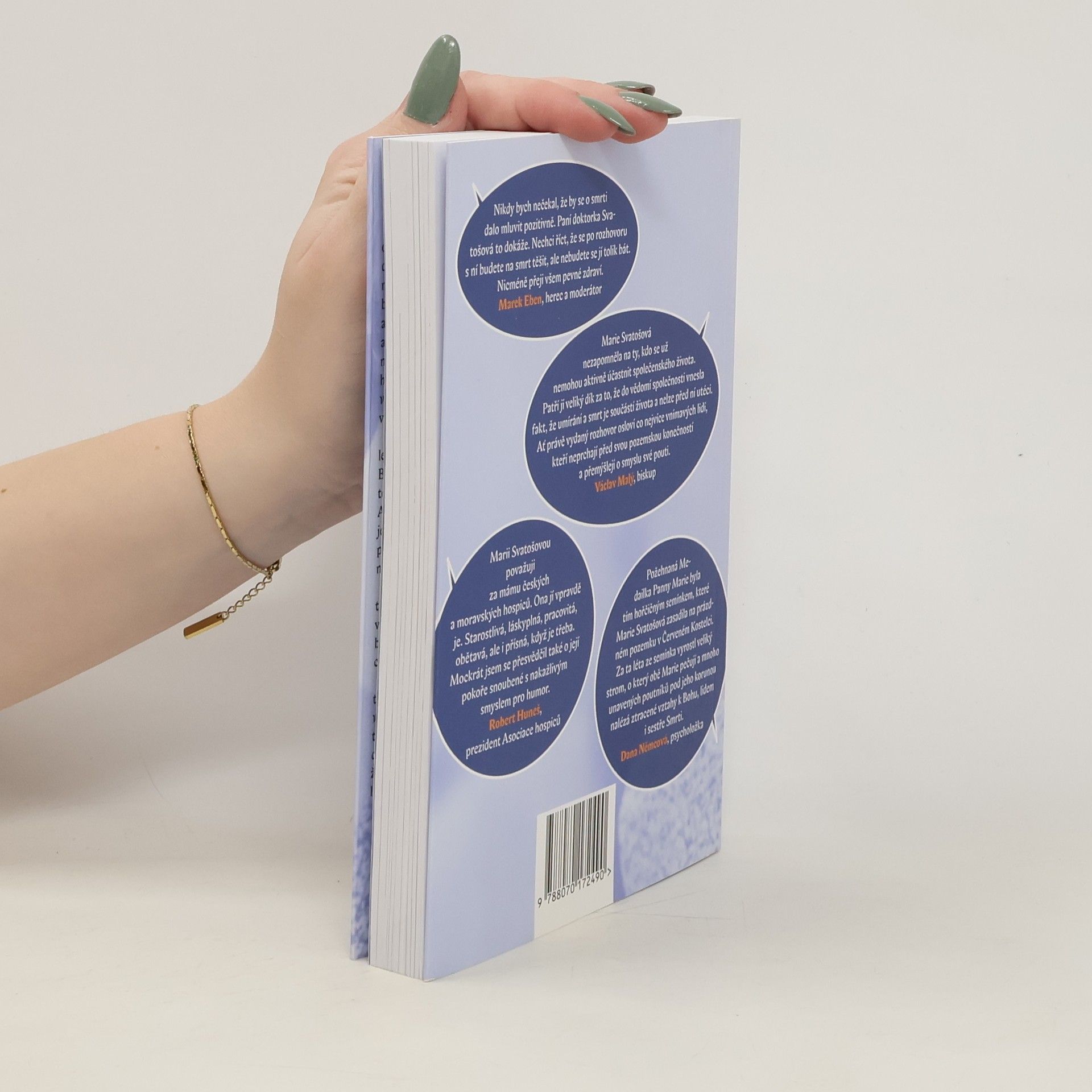 Marie Svatošová v rozhovoru s Alešem Palánem. Co se stane, pokud pacientovi o jeho zdravotním stavu dlouhodobě lžeme? Má vážná choroba nějaký smysl? A proč umírající nezabíjet, jak si přejí zastánci eutanázie, ale naopak respektovat jejich život až do přirozeného konce a být jim nablízku? Nejen o těchto věcech hovoří v knize rozhovorů Neboj se vrátit domů zakladatelka hospicového hnutí v ČR Marie Svatošová. Rozhovor s ní vede spisovatel a novinář Aleš Palán. Právě Svatošová před lety přišla s myšlenkami hospicové paliativní péče. Byla to ona, kdo v Červeném Kostelci iniciovala první český hospic. A je to stále ona, kdo neúnavně jezdí po republice s hospicovými přednáškami a je rádkyní hospicům nově vznikajícím. Marie Svatošová v knize mluví také o své rodině, studiu medicíny, vlivu, jaký na ni měl P. Ladislav Kubíček či o svém trapistickém fan clubu. V mnoha hospicích najdeme citát: „Našim cílem je naplnit dny životem, nikoliv život dny.“ Autorka tohoto výroku Marie Svatošová dokázala životem naplnit celý svůj život. A nejen životem, také smyslem a neokázalou službou. „Nikdy bych nečekal, že by se o smrti dalo mluvit pozitivně. Paní doktorka Svatošová to dokáže. Nechci říct, že se po rozhovoru s ní budete na smrt těšit, ale nebudete se jí tolik bát,“ říká k obsahu knihy herec a moderátor Marek Eben. „Nicméně přeji všem pevné zdraví,“ dodává.