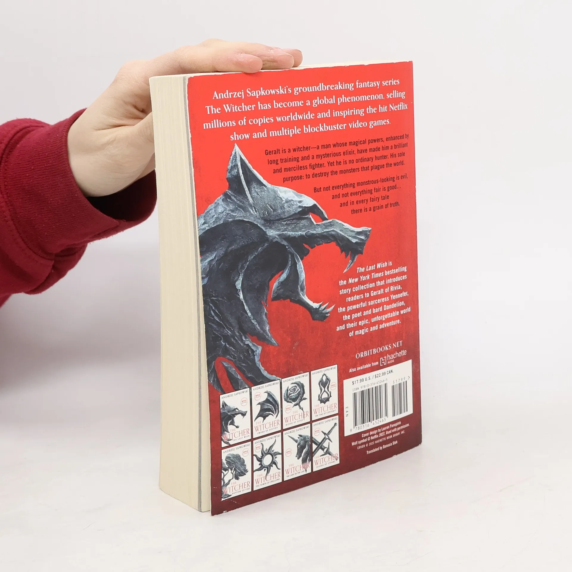 Geralt the Witcher--revered and hated--holds the line against the monsters plaguing humanity in this collection of adventures, the first chapter in Andrzej Sapkowski's groundbreaking epic fantasy series that inspired the hit Netflix show and the blockbuster video games. Geralt is a Witcher, a man whose magic powers, enhanced by long training and a mysterious elixir, have made him a brilliant fighter and a merciless hunter. Yet he is no ordinary killer. His sole purpose: to destroy the monsters that plague the world. But not everything monstrous-looking is evil and not everything fair is good . . . and in every fairy tale there is a grain of truth. Witcher collections The Last Wish Sword of Destiny Witcher novels Blood of Elves The Time of Contempt Baptism of Fire The Tower of Swallows Lady of the Lake Season of Storms Hussite Trilogy The Tower of Fools Warriors of God Translated from original Polish by Danusia Stok