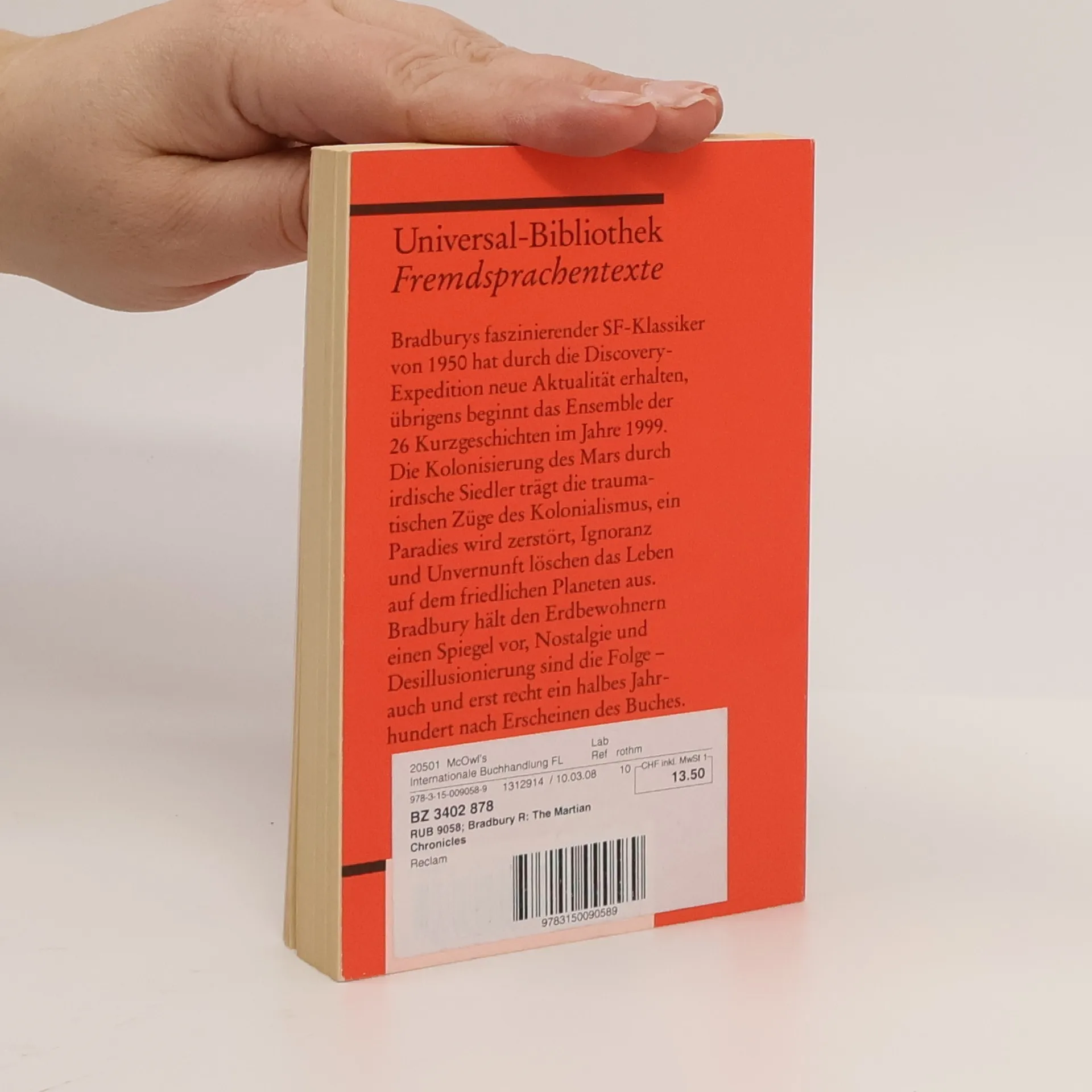 Einer Science-fiction-Klassiker von 1950 hat durch die Sojourner-Mission neue Aktualität erhalten. Zudem beginnt das Ensemble der 26 Kurzgeschichten im Jahre 1999. Die Kolonisierung des Mars durch amerikanische Siedler trägt die traumatischen Züge des Kolonialismus, ein Paradies wird zerstört, Ignoranz und Unvernunft löschen das Leben auf dem friedlichen Planeten aus.