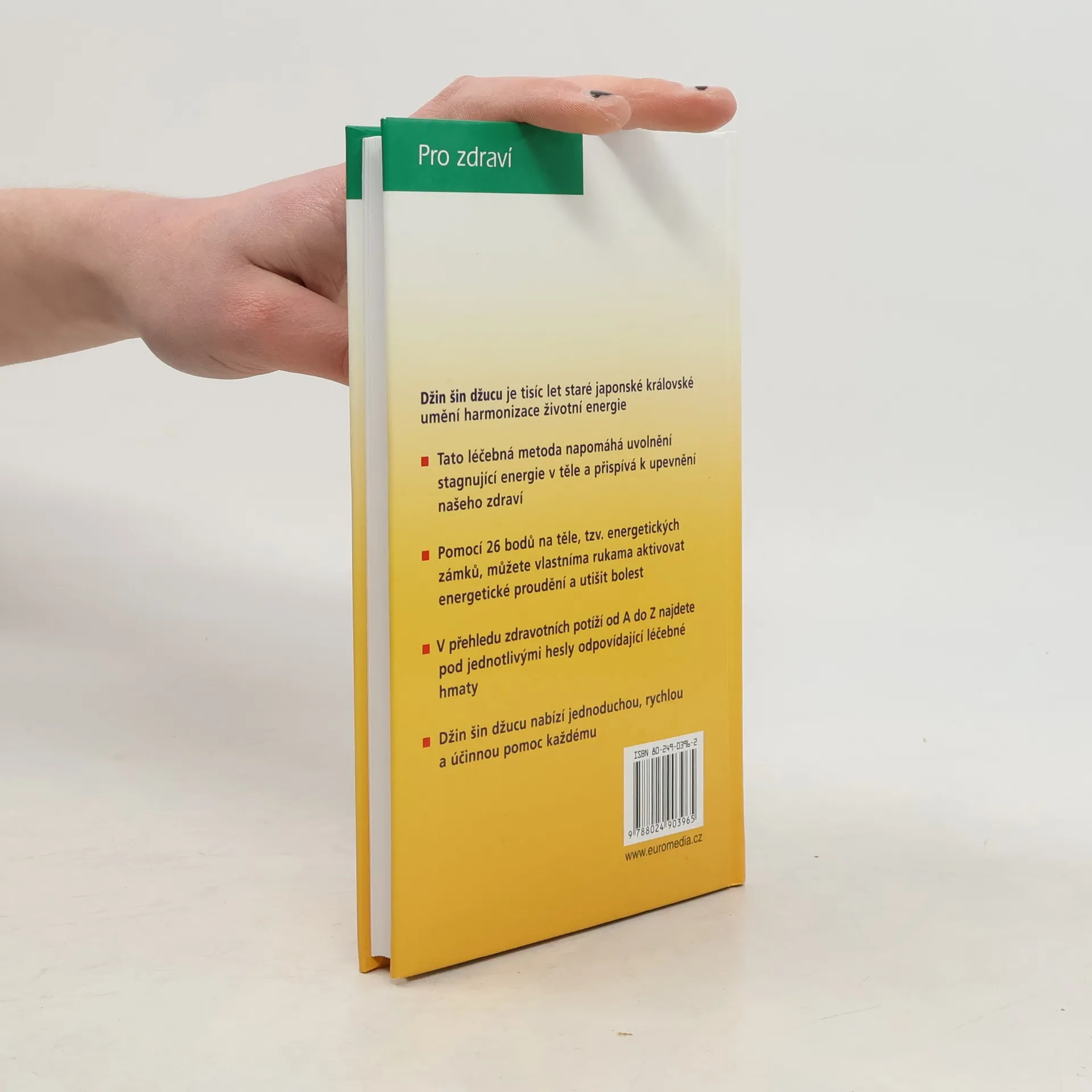 Džin šin džucu je prastaré japonské umění harmonizace životní energie a uvolňování energetických blokád v lidském organismu pomocí rukou. Jednoduchá, rychlá a účinná samoléčebná metoda, při níž se používá držení prstů a krátké hmaty, dokáže utišit bolest.