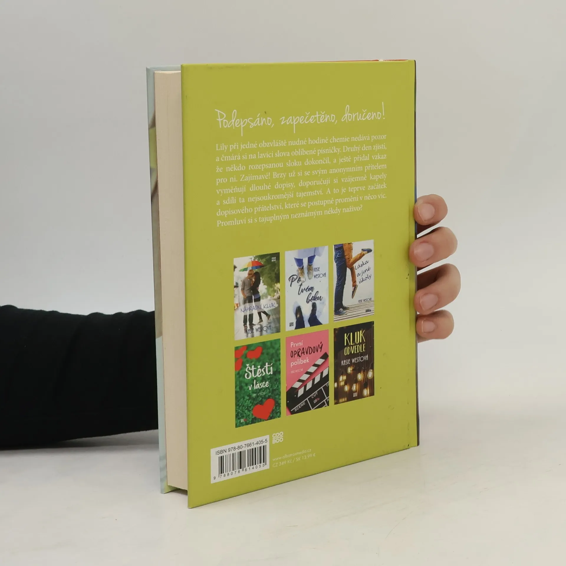 Podepsáno, zapečetěno, doručeno! Další romantická kniha od oblíbené Kasie Westové. Lily při jedné obzvláště nudné hodině chemie nedává pozor a čmárá si na lavici slova své oblíbené písničky. Když se druhý den vrátí na svoje místo ve třídě, zjistí, že někdo rozepsanou sloku dokončil, a ještě přidal vzkaz pro ni. Zajímavé! Brzy už si se svým anonymním přítelem vyměňují dlouhé dopisy, doporučují si vzájemně kapely a sdílí ta nejsoukromější tajemství. Lily si uvědomí, že se do tajemného neznámého postupně zamilovává. Ale kdo to je? Zatímco se snaží rozluštit tuhle záhadu a vypořádat se s problémy se školou, kamarády i se svou bláznivou rodinou, zjistí, že o některých srdečních záležitostech se prostě psát nedá… Promluví si s tajuplným neznámým někdy naživo?