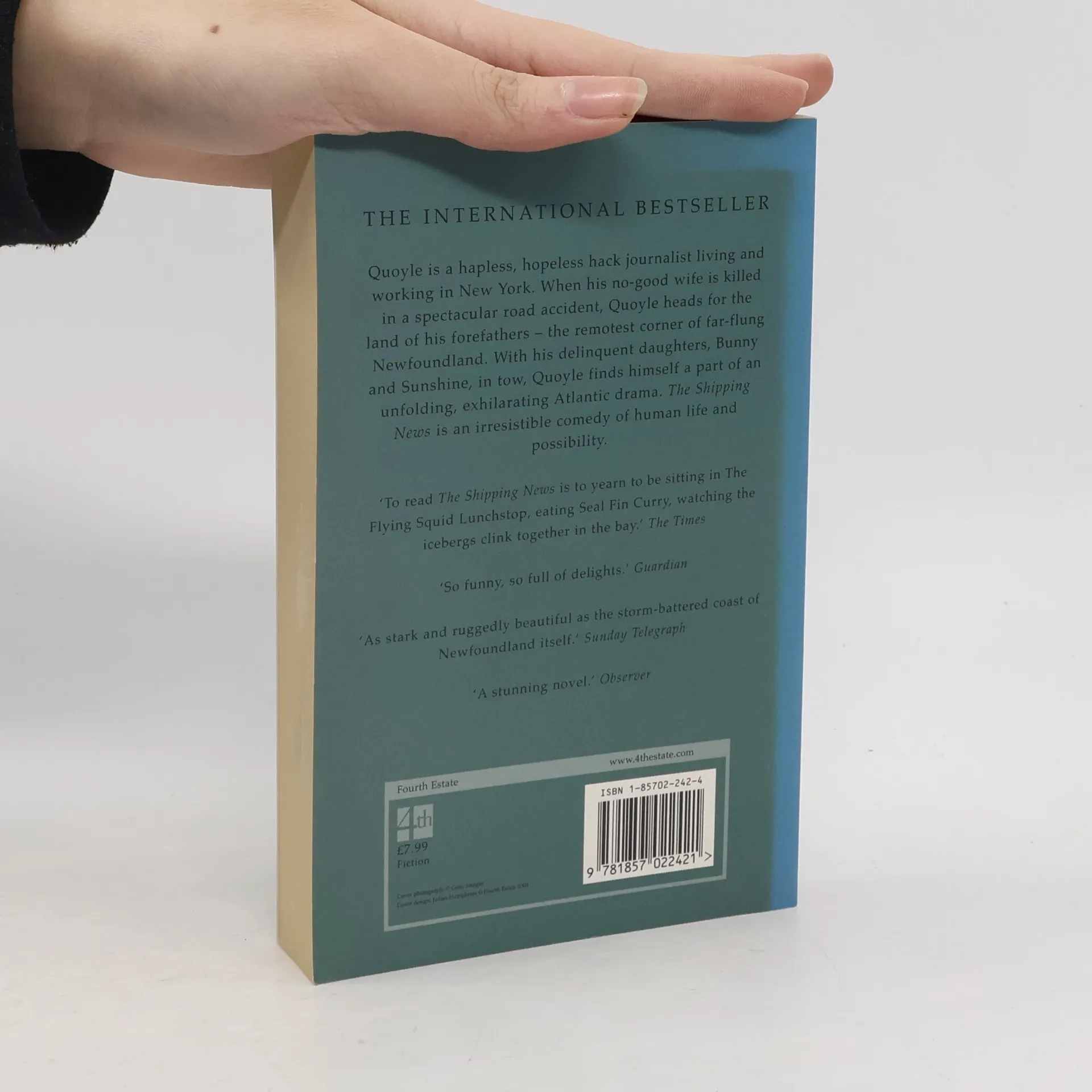 Annie Proulx's highly acclaimed, international bestseller and Pulitzer Prize-winning novel. Quoyle is a hapless, hopeless hack journalist living and working in New York. When his no-good wife is killed in a spectacular road accident, Quoyle heads for the land of his forefathers - the remotest corner of far-flung Newfoundland. With 'the aunt' and his delinquent daughters - Bunny and Sunshine - in tow, Quoyle finds himself part of an unfolding, exhilarating Atlantic drama. 'The Shipping News' is an irresistible comedy of human life and possibility.