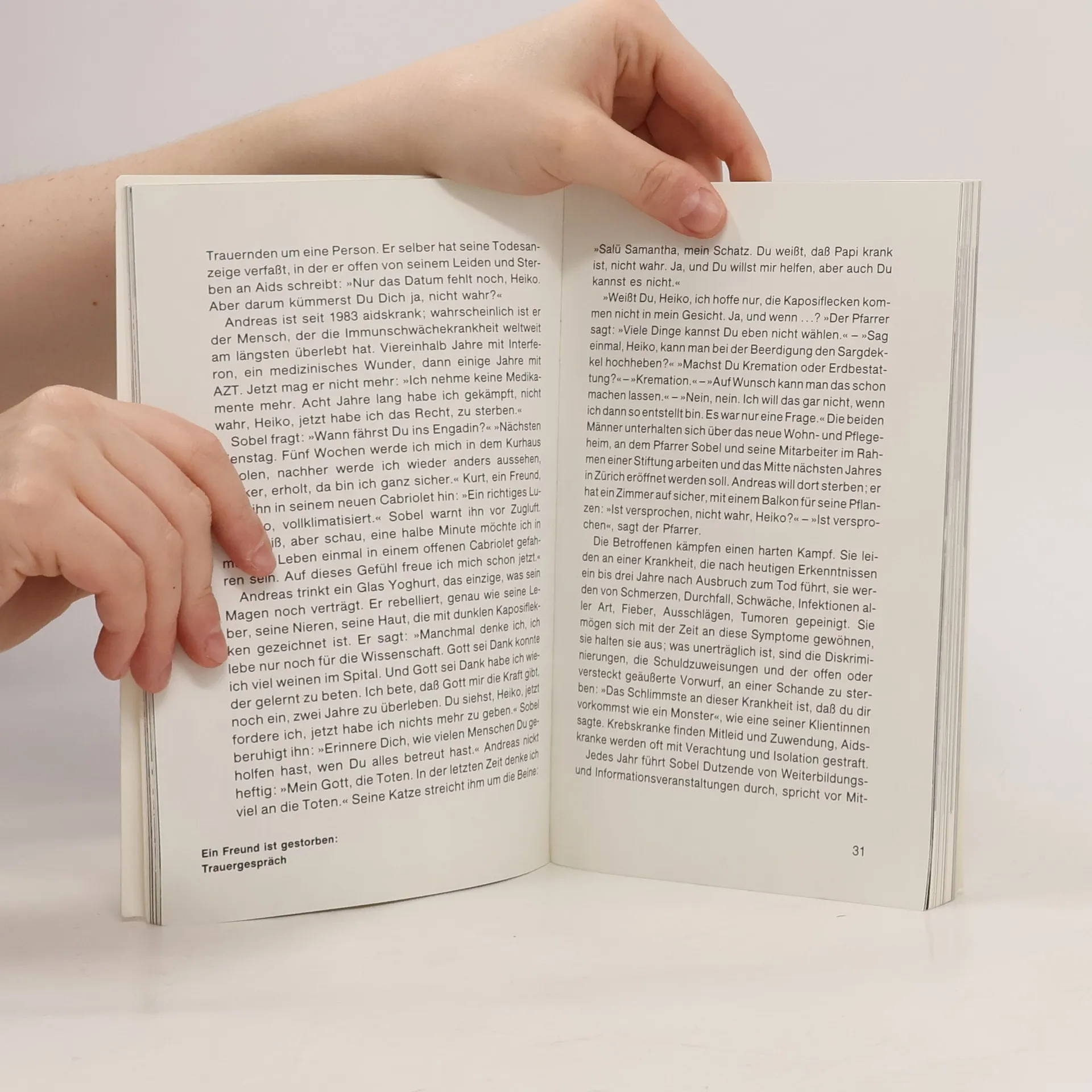Das Buch zeigt, wie an Aids Erkrankte in der Schweiz in Kenntnis ihrer (Un- )Möglichkeiten leben. Menschen erzählen, berichten und werden fühlbar. Aids erhält ein Gesicht, tritt heraus aus dem Dunkel der Verdrängung. [Ed.]