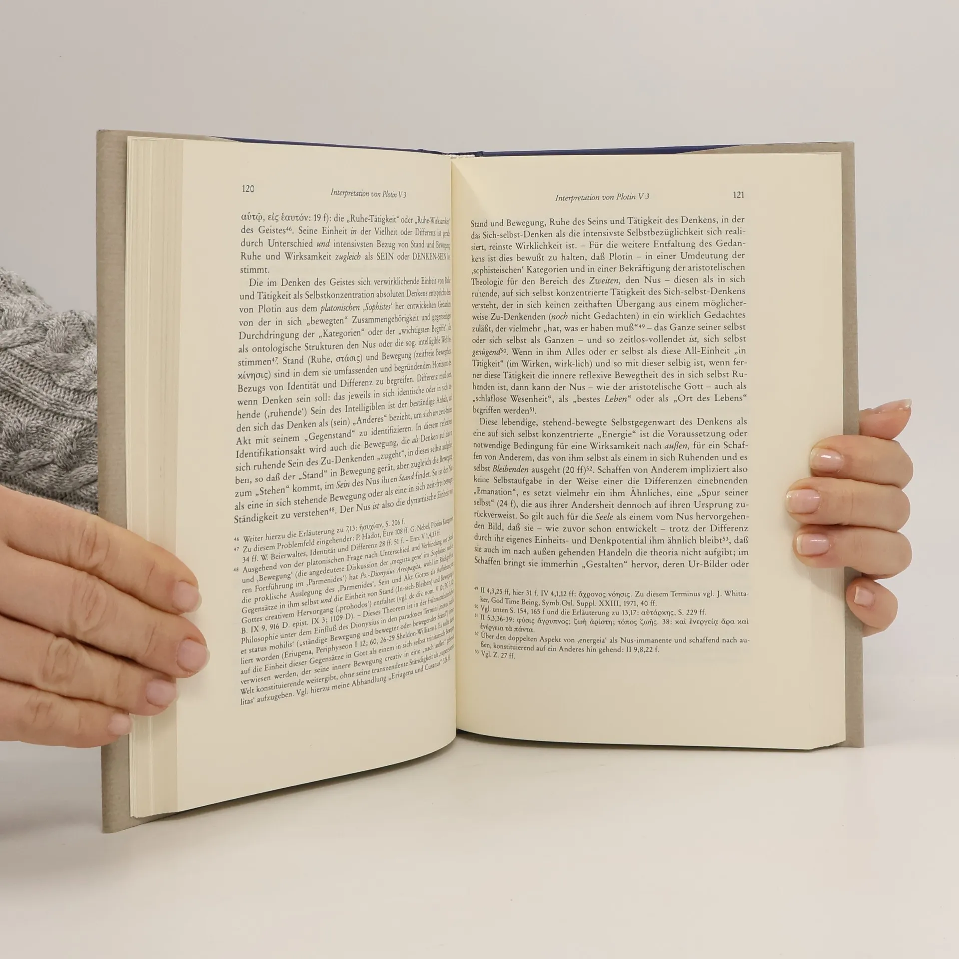 Das Verhältnis von Selbsterkenntnis und Erfahrung der Einheit des eigenen und absoluten Grundes ist ein zentraler Gedanke in Plotins Philosophieren. Er umfaßt die Möglichkeiten der sinnlichen Erfahrung, des begreifenden Denkens im Kontext der Zeit und dessen Verbindung zu einer zeit-freien Form von Selbstreflexion. In einer Bewegung des inneren „Aufstiegs“ macht das Denken sich sein eigenes Selbst - das denkende Eine in ihm - bewußt. Plotins Imperativ: „Laß ab von Allem“ drängt allerdings nicht zu begrifflich blinder Unmittelbarkeit, zu einem irrationalen Sprung ins Absolute, sondern verweist auf den Prozeßcharakter des Philosophierens: am Ende der begreifenden, sich seiner selbst bewußt werdenden, universalen Abstraktionsbewegung steht der Selbstüberstieg des Denkens als dessen höchste Möglichkeit, die ihm aus seinem eigenen Einheitsgrund zukommt. Das vorliegende Buch analysiert diesen Grundgedanken anhand einer eingehenden Interpretation von Plotins Enneade V 3 („Über die erkennenden Wesenheiten“), übersetzt den griechischen Text neu und erläutert die ihn wesentlich bestimmenden Begriffe und Denkformen. Es arbeitet den geschichtlichen Kontext des Begriffes „Selbsterkenntnis“ im Blick auf die platonische Tradition heraus, trägt einiges bei zu einem verantwortbaren Begriff philosophischer Mystik und zeigt implizit auch wichtige Ansatzpunkte für die mittelalterliche und neuzeitliche Diskussion von „Selbstbewußtsein“.