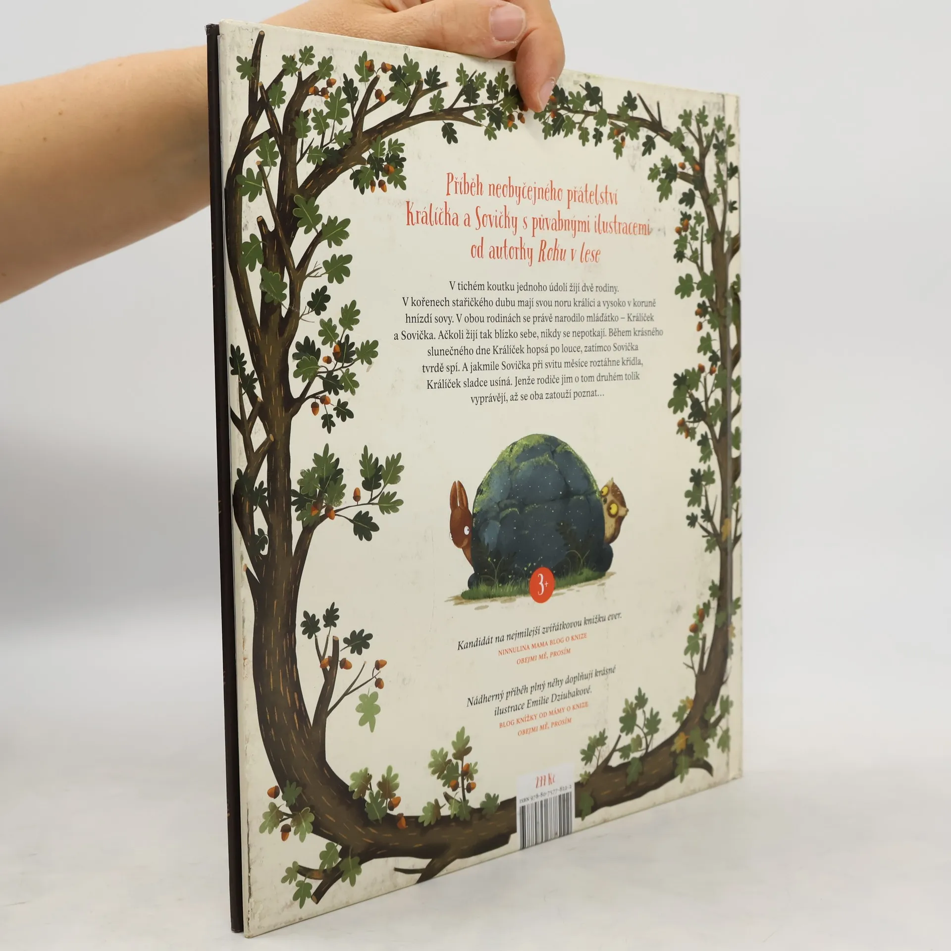 Příběh neobyčejného přátelství králíčka a sovičky s půvabnými ilustracemi od autorky Roku v lese. U kořenů starého dubu bydlí králičí rodinka a vysoko v koruně nad nimi hnízdí sovy. V obou rodinách se právě narodilo mláďátko. Ačkoli žijí tak blízko sebe, málokdy se potkají. Když je krásný, slunečný den a Králíček běhá po louce, Sovička tvrdě spí. A jakmile Sovička v odlesku měsíce roztáhne křídla, Králíček sladce usíná. Tak ubíhají dny i noci a Králíček se Sovičkou se nikdy nepotkají. Jenže rodiče jim o tom druhém tolik vyprávějí, až se oba zatouží poznat… Pro děti od tří let. ---- Nádherný příběh plný něhy doplňují krásné ilustrace Emilie Dziubakové. - Blog Knížky od mámy o knize Obejmi mě, prosím Kandidát na nejmilejší zvířátkovou knížku ever. - Ninnulina mama blog o knize Obejmi mě, prosím