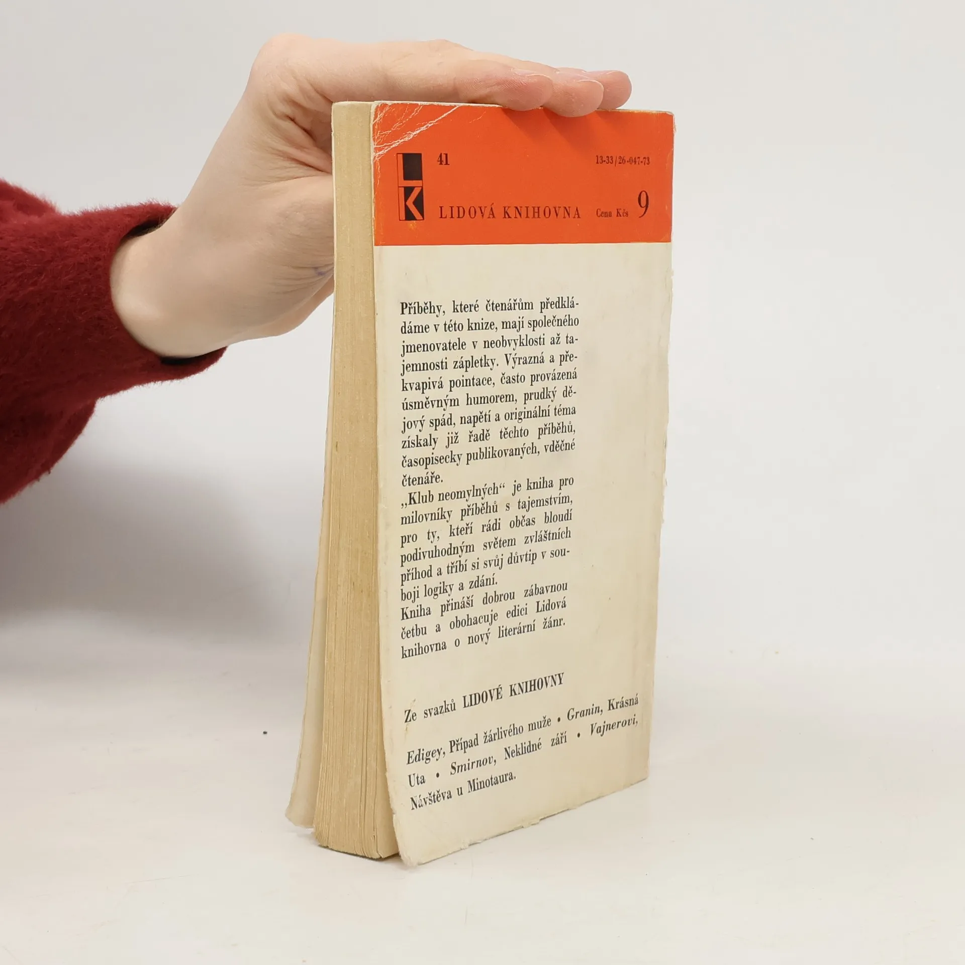 Klub neomylných je kniha pro milovníky příběhů s tajemstvím, pro ty, kteří rádi občas bloudí podivuhodným světem zvláštních příhod a tříbí si svůj důvtip v souboji logiky a zdání. Povídky v této knize mají společného jmenovatele v neobvyklosti až tajemnosti zápletky, mají výraznou a překvapivou pointaci provázenou často úsměvným humorem a svým dějovým spádem, napětím a originalitou si získaly řadu čtenářů. Řada z nich byla publikována časopisecky, toto je první ucelené vydání. Obsah: Klub neomylných –Lék - Telefon o desáté - Lordova socha - Šarlatový kámen - Černá slepice - Miláček města - Případ s žehličkami - Wordenova raketa – Sadař - Zelený kmín - Jak navázat spojení - Návštěva z neznáma – Jméno - Nečisté síly Lucián - Květ divizny – Génius - Cesta na jih - Ty konce -Vesmír je nekonečný