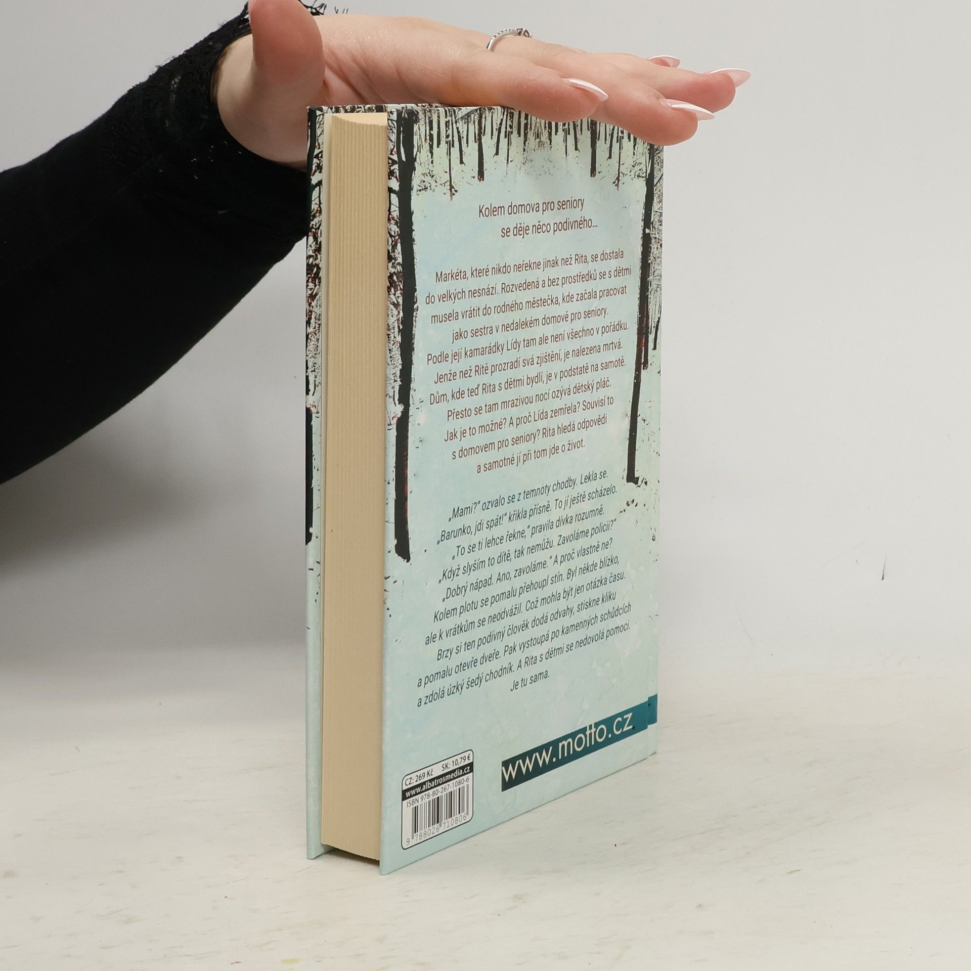 Markéta, které nikdo neřekne jinak než Rita, se dostala do velkých nesnází. Rozvedená a bez prostředků se s dětmi musela vrátit do rodného městečka, kde začala pracovat jako sestra v nedalekém Domově pro seniory. Podle její kamarádky Lídy tam ale není všechno v pořádku. Jenže než Ritě prozradí svá zjištění, je nalezena mrtvá. Dům, kde teď Rita s dětmi bydlí, je v podstatě na samotě. Přesto se tam mrazivou nocí ozývá dětský pláč. Jak je to možné? A proč Lída zemřela? Souvisí to s domovem pro seniory? Rita hledá odpovědi a samotné jí při tom jde o život.