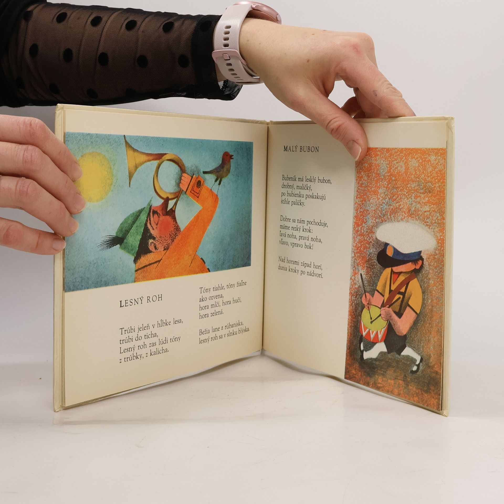 Básničky pre deti: Husle, Klarinet, Flauta, Harfa, Klavír, Basa, Lesný roh, Malý bubon, Bubon a činely, Trúbka. Tretie vydanie. Cena knihy v čase vydania: 14 Kčs.