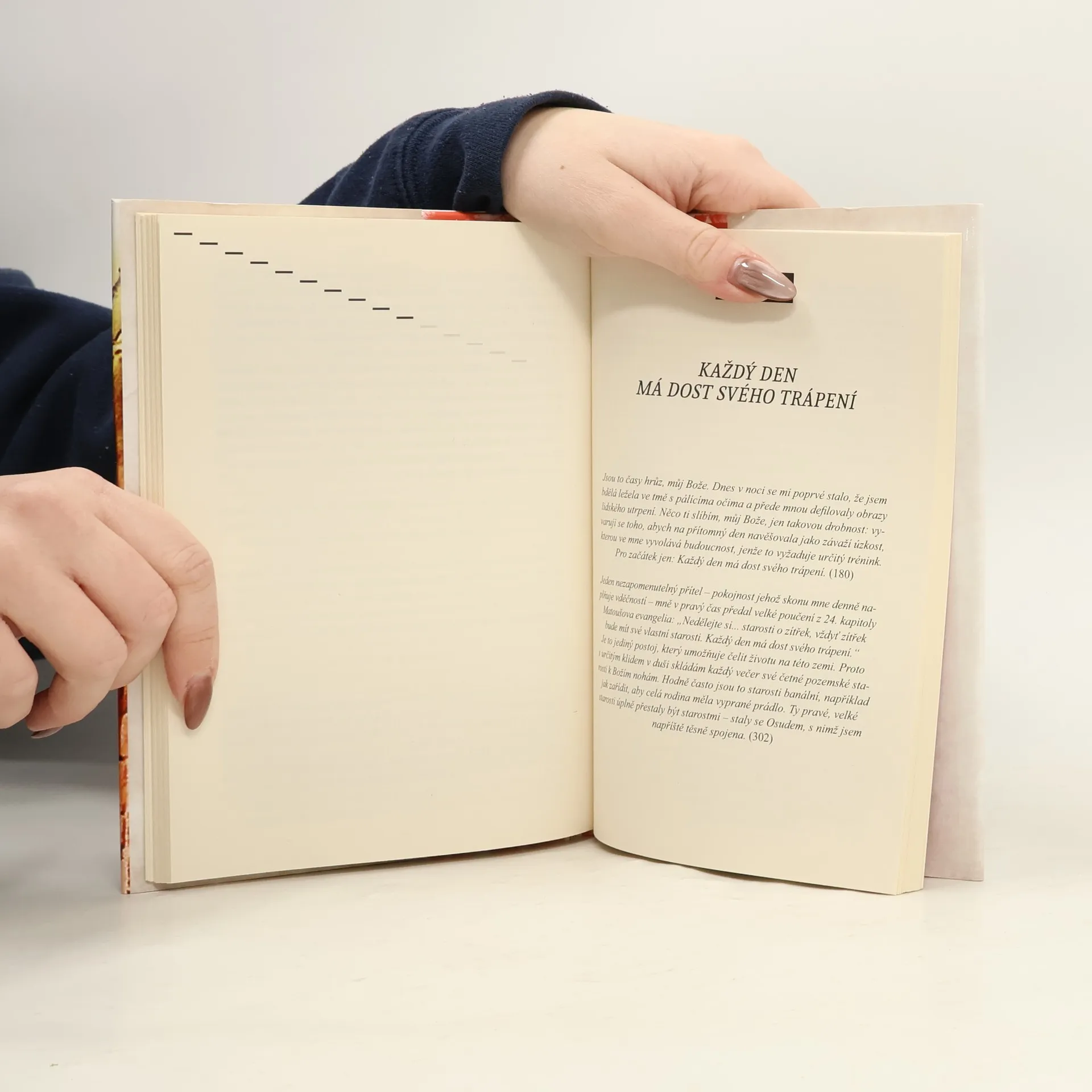 Etty Hillesumová vyvolává od osmdesátých let, kdy byl vydán její deník, takový zájem a pozornost, že ji lze považovat za jednu z předních duchovních postav, jež oslovují dnešní hledače Boha. Tato mladá holandská Židovka, která roku 1943 zemřela v Osvětimi, prošla v posledních třech letech svého jen devětadvacetiletého života uchvacující cestou. Byla to osobnost nadaná, živá, ba vášnivá, ale také plná chaosu, v němž se mnohdy ztrácela. S pomocí terapeuta se pustila do práce na sobě, díky níž sama, mimo jakoukoli konfesi, dospěla k setkání s Bohem a v dramatickém kontextu holokaustu i k uchování si vnitřní svobody a oddané službě svému lidu.
