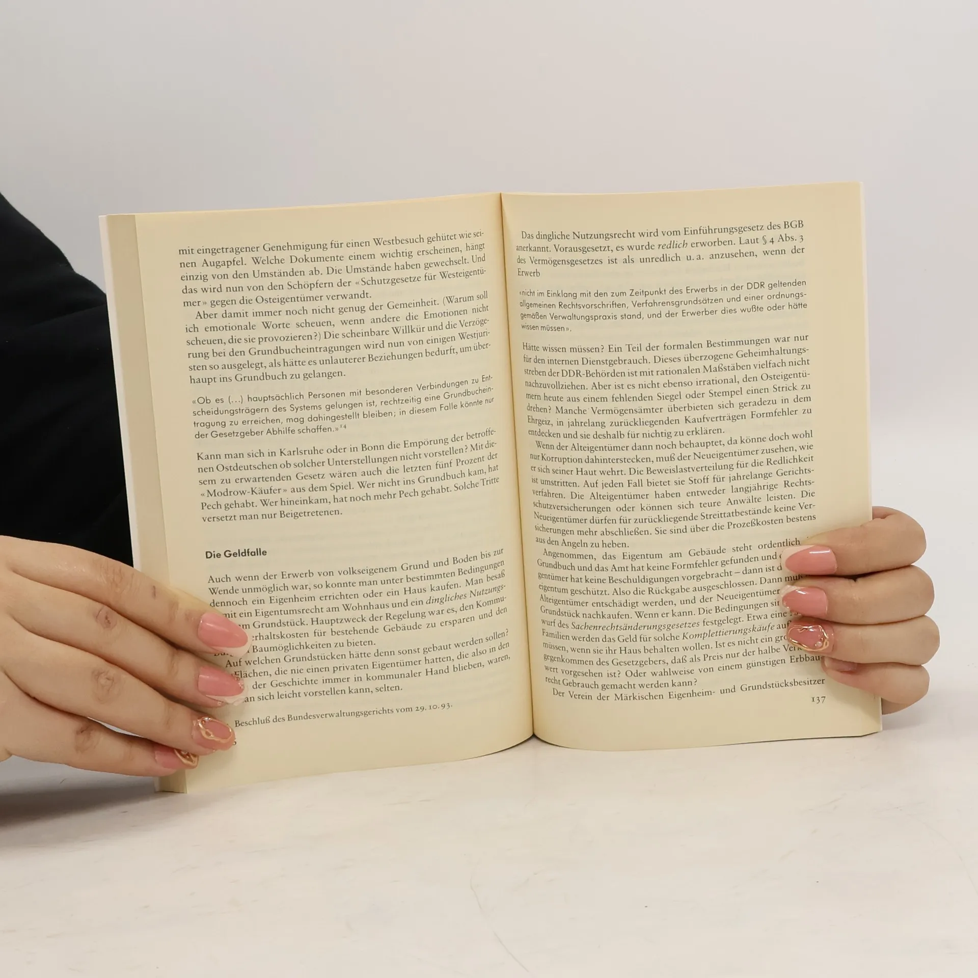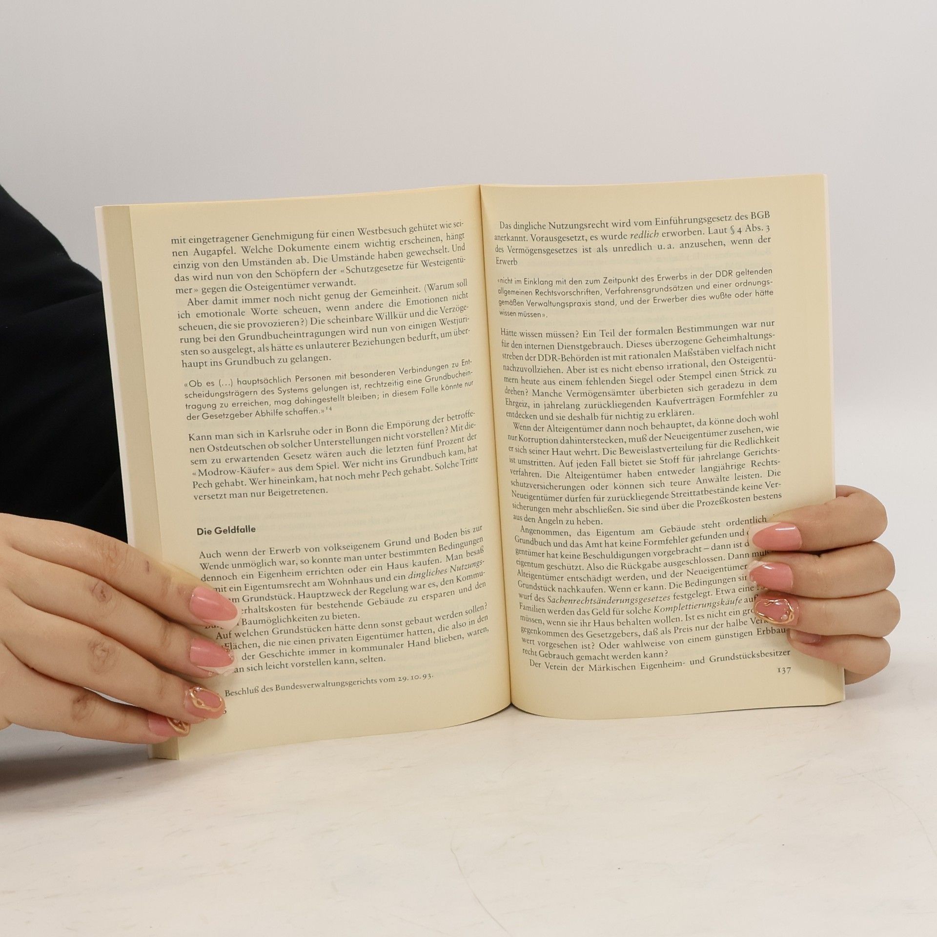 Die Regelung der Eigentumsfrage war das unumstrittene Kernstück des Einigungsvertrages: Wem gehört der Osten? Das Vermögensgesetz gibt hierauf eine Antwort, die zu einer scharfen Polarisierung geführt hat. Das Grundprinzip „Rückgabe vor Entschädigung“ ist weder auf sozialen Ausgleich noch auf soziale Gerechtigkeit ausgerichtet. Es hat vielmehr zur Folge, daß sich heute mehrere Millionen Menschen in den neuen Bundesländern von Vertreibung bedroht fühlen.
