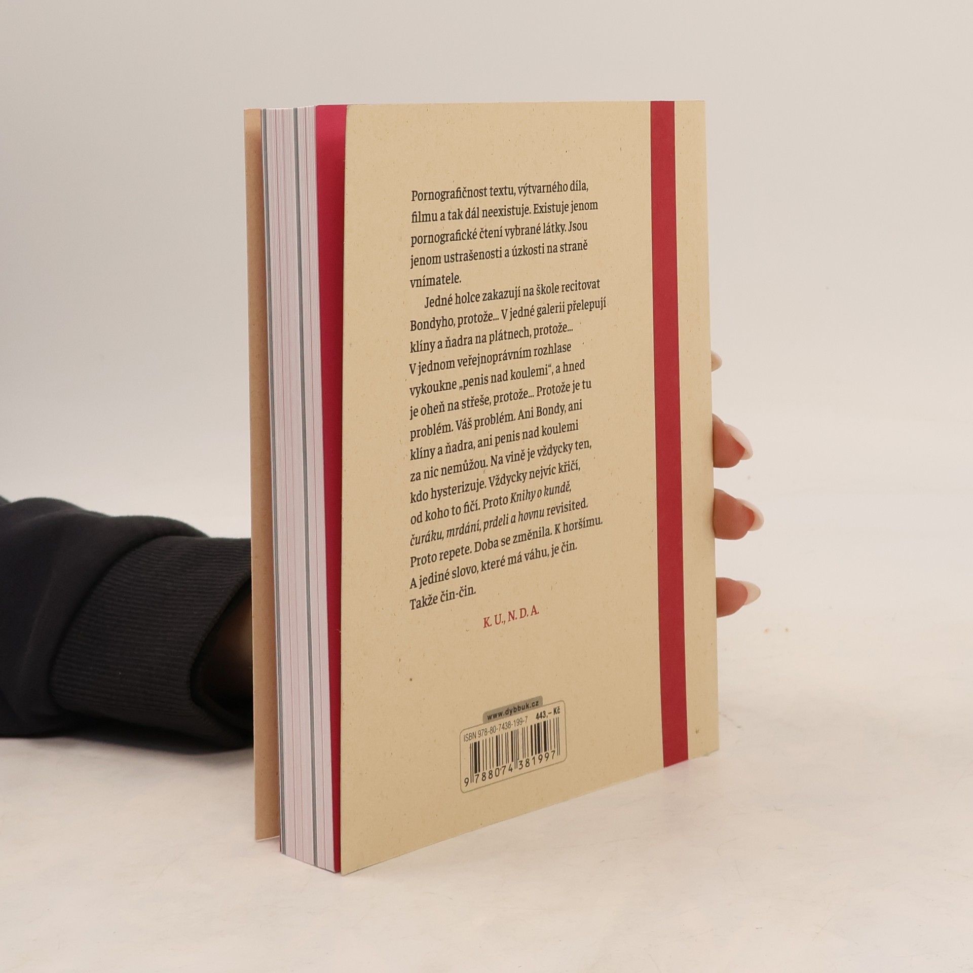 „KNIHA O“ je sbírka více než tří set erotických textů z pera spisovatelů uznávaných, zatracovaných i anonymních, bohatě ilustrovaná výtvarníky napříč staletími. Navazuje na kontroverzní Knihu o kundě a rozšiřuje ji o další texty i díla současných českých umělců. Ať už v literatuře či v umění, erotika je nevysychající pramen fantazie a života… Kunda je cesta, po které sem člověk přišel a ke které se celý život vrací. Když penis stojí, je připraven, a když je připraven, je to neslušnost. I v dnešní době existují tabu, přičemž život ze samotné své povahy přestupuje veškerá omezení… „Pornografičnost textu, výtvarného díla, filmu a tak dál neexistuje. Existuje jenom pornografické čtení vybrané látky. Jsou jenom ustrašenosti a úzkosti na straně vnímatele. Jedné holce zakazují na škole recitovat Bondyho, protože… V jedné galerii přelepují klíny a ňadra na plátnech, protože… V jednom veřejnoprávním rozhlase vykoukne „penis nad koulemi“, a hned je oheň na střeše, protože… Protože je tu problém. Váš problém. Ani Bondy, ani klíny a ňadra, ani penis nad koulemi za nic nemůžou. Na vině je vždycky ten, kdo hysterizuje. Vždycky nejvíc křičí, od koho to fičí. Proto repete. Doba se změnila. K horšímu. A jediné slovo, které má váhu, je čin. Takže čin-čin.“