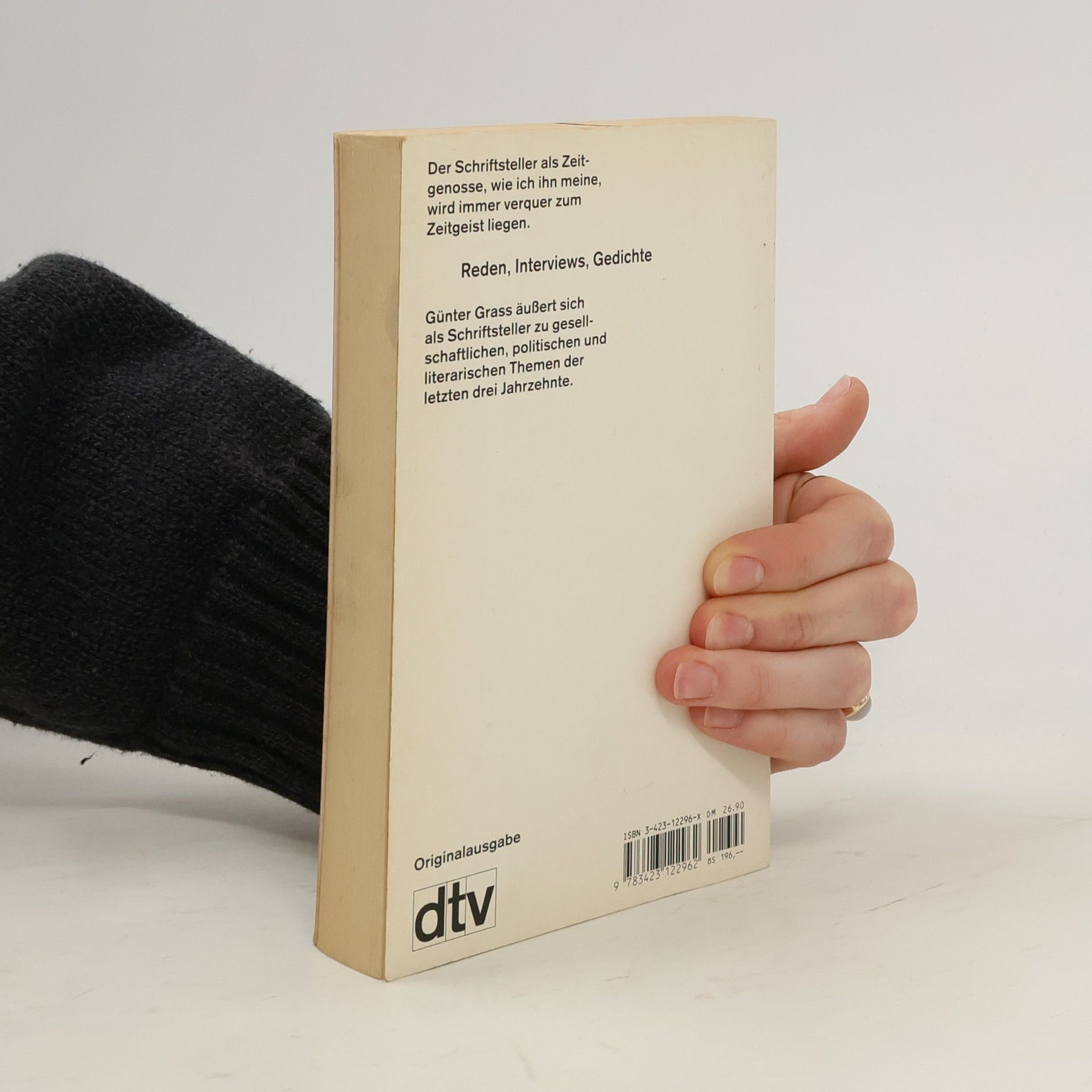 Die Spiegelung von Zeitgeschichte durch gegenwärtige Literatur erfordert Autoren, die sich als Zeitgenossen verstehen und die trivialsten politischen Vorgänge als realen Widerstand wahrnehmen. Sie streben nicht nach zeitloser Kunst, sondern nutzen erzählerische Einfälle, um mangelnde Distanz zum aktuellen Geschehen auszugleichen. Diese Schriftsteller sind bewusste Gegner akademisch entschlackter Dichtkunst und sehen sich oft staatlichem Druck oder literaturkritischer Inquisition ausgesetzt. In einer Rede, die Günter Grass im Juni 1986 auf dem Internationalen PEN-Kongress in Hamburg hielt, reflektiert er über seine Erfahrungen als Schriftsteller, die stets von zeitgeschichtlichen Belastungen geprägt waren. Die Sammlung umfasst Reden, Dankesreden, Interviews und Gedichte, die Themen wie Selbstverständnis, Selbstvertrauen, Zorn, Literatur und Revolution, Meinungsfreiheit, die Rolle des Künstlers in der Gesellschaft und die Herausforderungen des Schreibens behandelt. Grass thematisiert die Erwartungen von Kritikern, das Recht auf Mitbestimmung und die Notwendigkeit eines säkularisierten Berufsstandes. Er spricht über die Wahrnehmung deutscher Literatur im In- und Ausland sowie über die ständige Konfrontation mit gesellschaftlichen Widersprüchen.