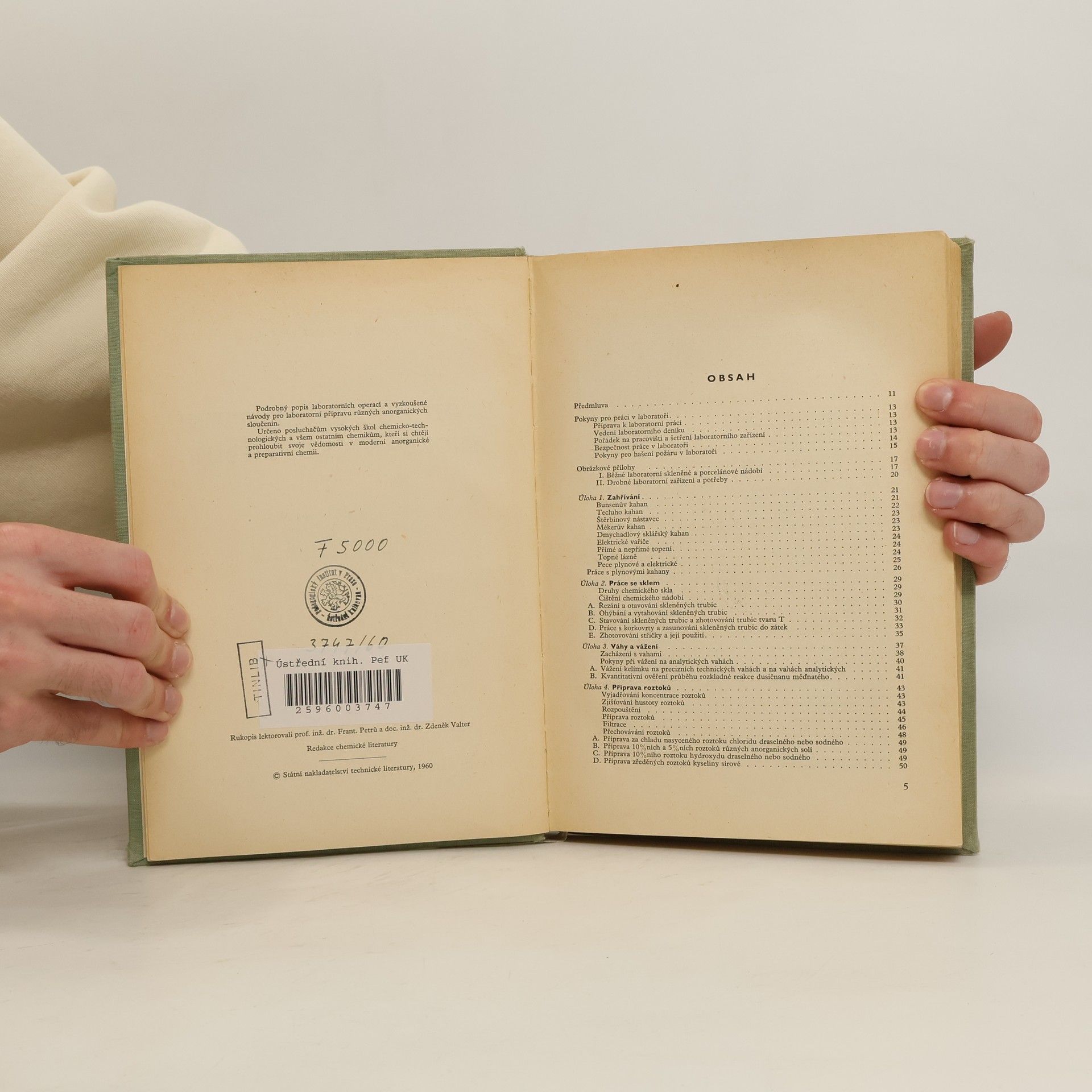 Učebnice pro vys. školy chemickotechnologické Řada chemické literatury anorganická chemie • chemické inženýrství • učebnice vysokých škol Autoři podrobně popisují laboratorní chemickou práci a vyzkoušené návody k základním i pokročilým úlohám, umožňujícím osvojení potřebné techniky a poskytujícím názorný obraz struktury, přípravy a vlastností charakteristickýchskupin anorganických sloučenin. Věcný rejstřík • S obr. a tb. v textu • Vazba: Josef Kalousek • 2700 výt. • Spoluvyd. Alfa, Bratislava • Přehl. lit. • Periodická soustava prvků • Atomové hmotnosti prvků
