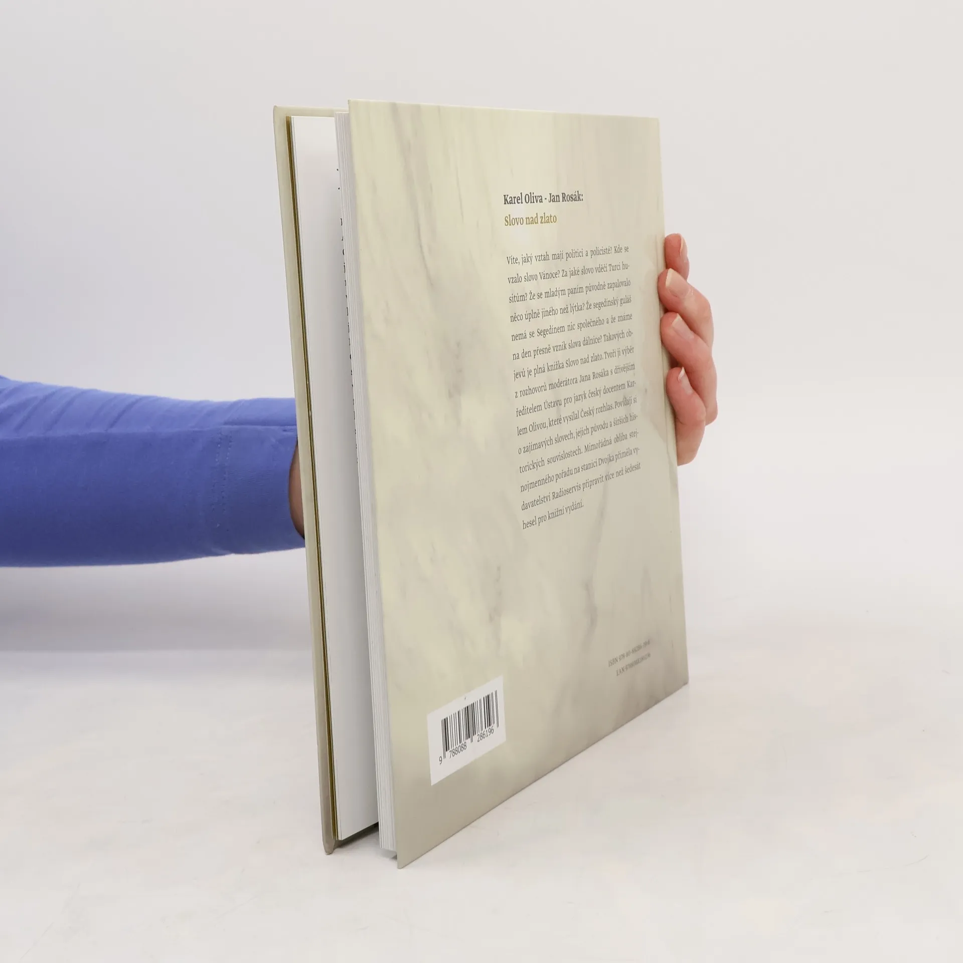 Víte, jaký vztah mají politici a policisté? Kde se vzalo slovo Vánoce? Za jaké slovo vděčí Turci husitům? Že se mladým paním původně zapalovalo něco úplně jiného než lýtka? Že segedínský guláš nemá se Segedínem nic společného a že známe na den přesně vznik slova dálnice? Takových objevů je plná knížka Slovo nad zlato. Tvoří ji výběr z rozhovorů moderátora Jana Rosáka s dřívějším ředitelem Ústavu pro jazyk český docentem Karlem Olivou, které vysílal Český rozhlas. Povídají si o zajímavých slovech, jejich původu a širších historických souvislostech. Mimořádná obliba stejnojmenného pořadu na stanici Dvojka přiměla vydavatelství Radioservis připravit více než šedesát hesel pro knižní vydání.