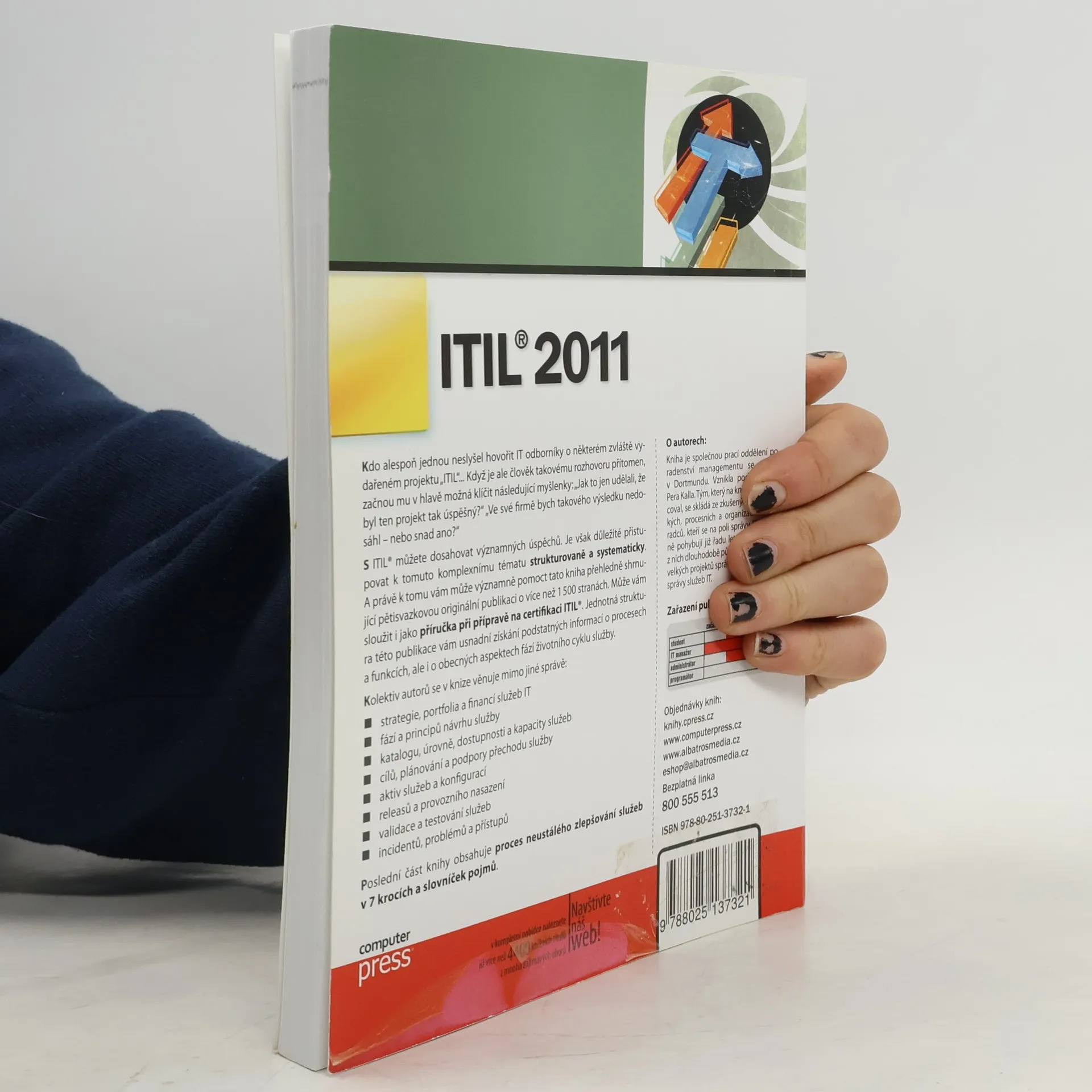 Kdo alespoň jednou slyšel IT odborníky hovořit o úspěšných projektech „ITIL“, může mít otázky jako: „Jak to dokázali?“ nebo „Mohu toho dosáhnout i ve své firmě?“ S ITIL® je možné dosahovat významných úspěchů, ale je důležité přistupovat k tomuto komplexnímu tématu strukturovaně. Tato kniha přehledně shrnuje pětisvazkovou publikaci o více než 1500 stranách a může sloužit jako příručka pro přípravu na certifikaci ITIL®. Umožňuje snadno získat klíčové informace o procesech, funkcích a obecných aspektech životního cyklu služby. Autoři se věnují správě strategií, portfolií a financí IT služeb, návrhu služby, katalogu a dostupnosti služeb, plánování a podpoře přechodu služby, aktivům služeb a konfiguracím, releasům a provoznímu nasazení, validaci a testování služeb, jakož i incidentům a problémům. Závěrečná část obsahuje proces neustálého zlepšování služeb v 7 krocích a slovník pojmů. Kniha vznikla pod vedením Pera Kalla a je výsledkem spolupráce zkušených poradců v oblasti správy IT, kteří mají bohaté zkušenosti s vedením projektů a výukou správy služeb IT.
