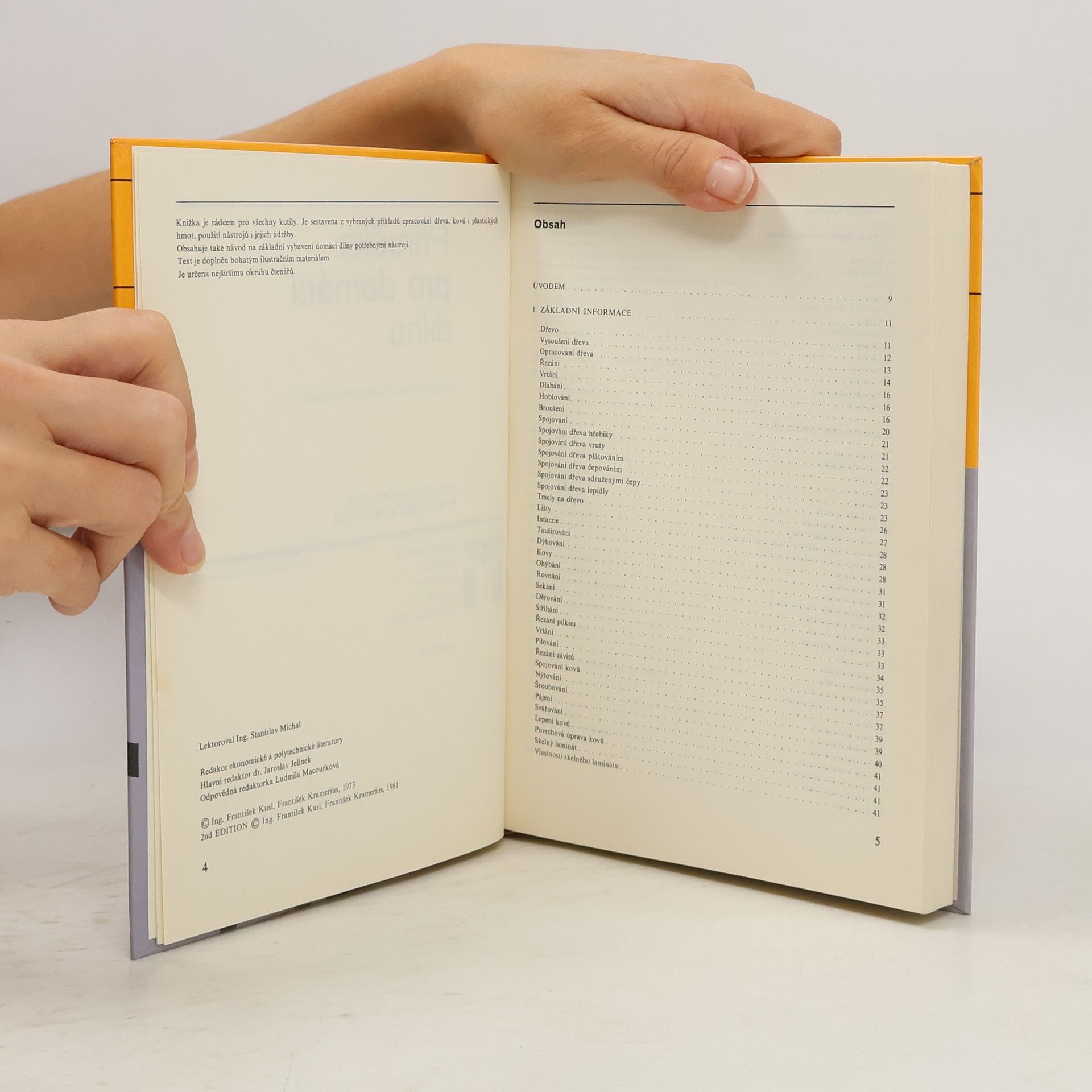 Knížka je rádcem pro všechny kutily. Je sestavena z vybraných příkladů zpracování dřeva, kovů i plastických hmot, použití nástrojů i jejich údržby. Obsahuje také návod na základní vybavení domácí dílny potřebnými nástroji. Text je doplněn bohatým ilustračním materiálem. Je určena nejširšímu okruhu čtenářů.