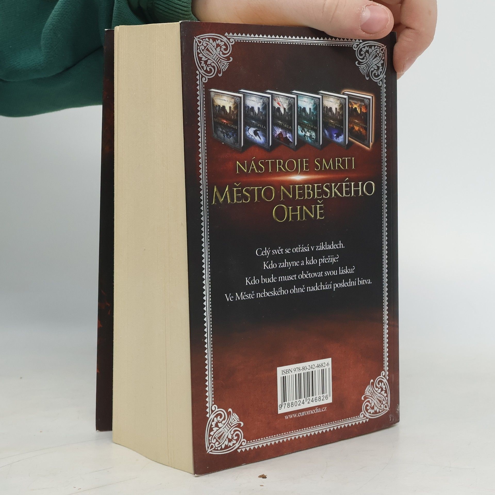 Na svět lovců stínů padla temnota, zavládl chaos a zkáza. Clary, Jace, Simon a jejich přátelé se nyní musí spojit proti největší hrozbě, jaké kdy čelili - Claryinu vlastnímu bratrovi. Sebastian Morgenstern přešel do útoku a systematicky zasévá rozkol do řad svých nepřátel. Pomocí Poháru smrti mění lovce stínů v bytosti z nočních můr, rozvrací rodiny, odtrhává od sebe milence a jeho temná armáda se stále zvětšuje. Je pevně odhodlaný zmocnit se vlády nad světem a proměnit jej v pustinu, a jelikož rozhádaní, bezradní lovci stínů a podsvěťané nevědí, co si počít, zdá se, že vítězství bude patřit jemu. Blíží se rozhodující bitva a Clary s Jacem mají pocit, že všechny trumfy drží v rukou jejich protivník. Vypadá to, že je nezranitelný jakoukoli pozemskou zbraní, a Jace stále neví, jak proti němu využít nebeský oheň, který mu nyní proudí v žilách. A když Sebastián zrádně unese jejich nejbližší, zbývá Jaceovi, Clary, Isabel, Alekovi a Simonovi jen jedna možnost: vypravit se do světa ovládaného démony a pokusit se porazit Valentýnova syna přímo v jeho sídle...