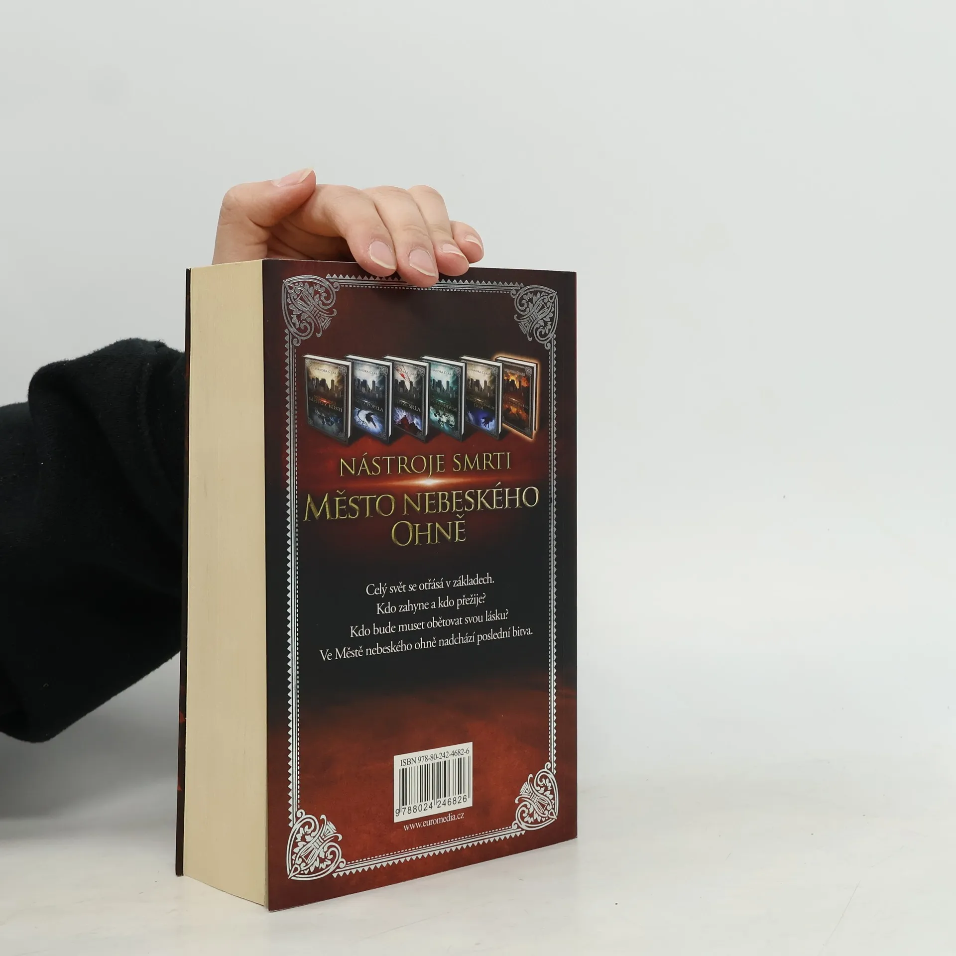 Na svět lovců stínů padla temnota, zavládl chaos a zkáza. Clary, Jace, Simon a jejich přátelé se nyní musí spojit proti největší hrozbě, jaké kdy čelili - Claryinu vlastnímu bratrovi. Sebastian Morgenstern přešel do útoku a systematicky zasévá rozkol do řad svých nepřátel. Pomocí Poháru smrti mění lovce stínů v bytosti z nočních můr, rozvrací rodiny, odtrhává od sebe milence a jeho temná armáda se stále zvětšuje. Je pevně odhodlaný zmocnit se vlády nad světem a proměnit jej v pustinu, a jelikož rozhádaní, bezradní lovci stínů a podsvěťané nevědí, co si počít, zdá se, že vítězství bude patřit jemu. Blíží se rozhodující bitva a Clary s Jacem mají pocit, že všechny trumfy drží v rukou jejich protivník. Vypadá to, že je nezranitelný jakoukoli pozemskou zbraní, a Jace stále neví, jak proti němu využít nebeský oheň, který mu nyní proudí v žilách. A když Sebastián zrádně unese jejich nejbližší, zbývá Jaceovi, Clary, Isabel, Alekovi a Simonovi jen jedna možnost: vypravit se do světa ovládaného démony a pokusit se porazit Valentýnova syna přímo v jeho sídle...