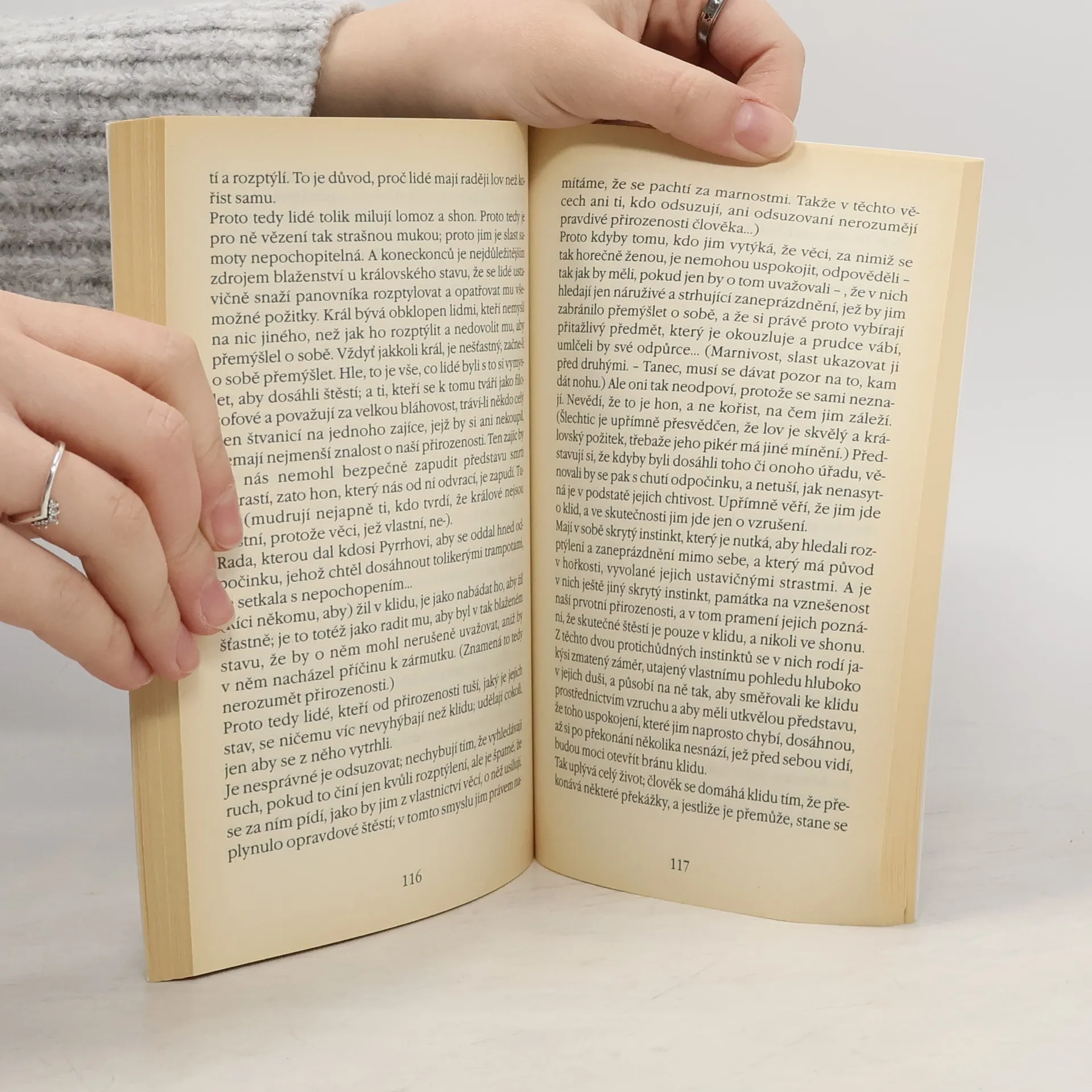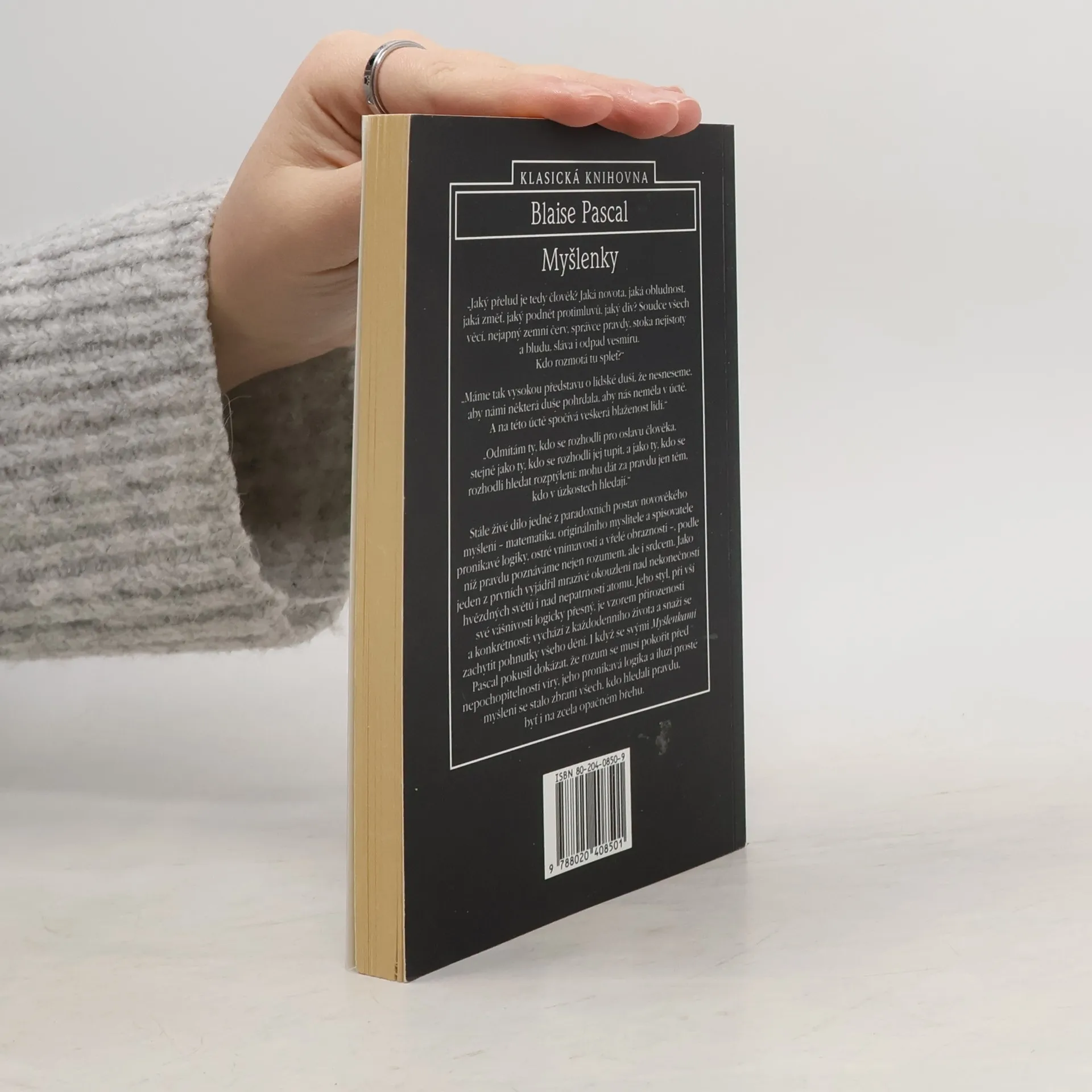 Výbor z nejznámějšího díla francouzského myslitele, přírodovědce a matematika (1623-1662). Nedokončené dílo, které mělo být obranou křestanského náboženství se zachovalo jenom ve zlomcích a proto se stalo v průběhu doby předmětem uspořádávání nejrůznějších editorů. Tento český výbor zachycuje všechna základní témata Pascalových myšlenek v devíti okruzích, ve kterých jsou výroky shromážděny v krátkých, někdy i jednovětých citacích. Autor v nich vyjadřuje svůj pevný postoj jansenistického filozofa k lidskému rozumu, k otázce dobra, k údělu člověka, k náboženství a víře,k lidské pýše, ale i k umění, literatuře a jazyku - postoj, že pravdu je možno poznat nejen rozumem, ale hlavně srdcem. Rozum se musí pokořit před nepochopitelností víry.