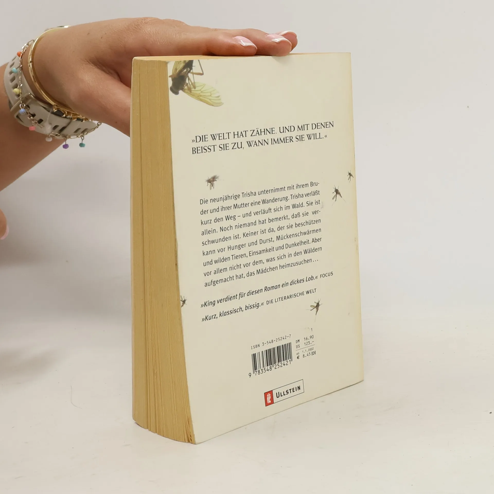 »Die Welt hat Zähne. Und mit denen beißt sie zu, wann immer sie will.« Die neunjährige Trisha unternimmt mit ihrem Bruder und ihrer Mutter eine Wanderung. Trisha verlässt kurz den Weg - und verläuft sich im Wald. Sie ist allein. Noch niemand hat bemerkt, dass sie verschwunden ist. Keiner ist da, der sie beschützen kann - vor Hunger und Durst, Mückenschwärmen und wilden Tieren, Einsamkeit und Dunkelheit. Aber vor allem nicht vor dem, was sich in den Wäldern aufgemacht hat, die Neunjährige heimzusuchen...