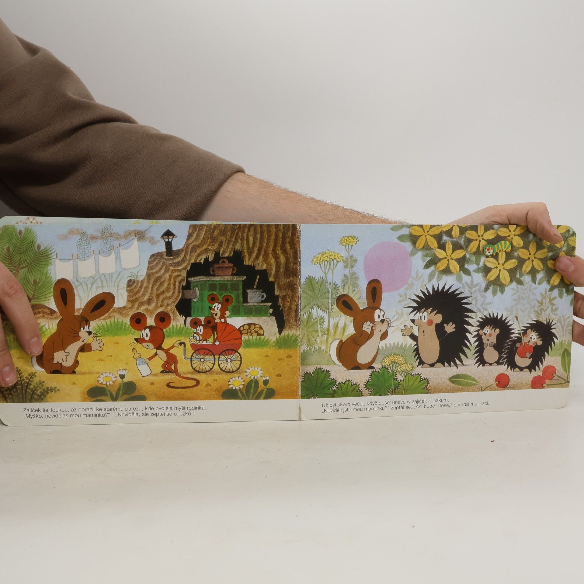 Leporelo pro děti s půvabnými ilustracemi Zdeňka Milera o krtkovi, zaječí rodince a jednom zvědavém, ztraceném zajíčkovi, kterému krtek pomůže najít cestu domů.