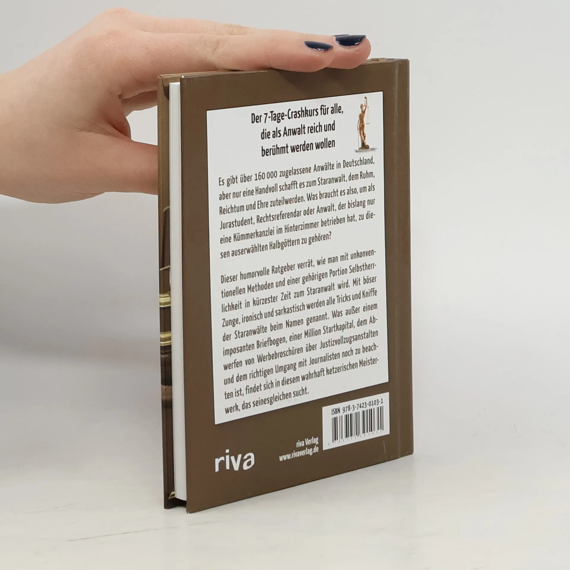 Der 7-Tage-Crashkurs für alle, die als Anwalt reich und berühmt werden wollen Es gibt über 160 000 zugelassene Anwälte in Deutschland, aber nur eine Handvoll schafft es zum Staranwalt, dem Ruhm, Reichtum und Ehre zuteilwerden. Was braucht es also, um als Jurastudent, Rechtsreferendar oder Anwalt, der bislang nur eine Kümmerkanzlei im Hinterzimmer betrieben hat, zu diesen auserwählten Halbgöttern zu gehören? Dieser humorvolle Ratgeber verrät, wie man mit unkonventionellen Methoden und einer gehörigen Portion Selbstherrlichkeit in kürzester Zeit zum Staranwalt wird. Mit böser Zunge, ironisch und sarkastisch werden alle Tricks und Kniffe der Staranwälte beim Namen genannt. Was außer einem imposanten Briefbogen, einer Million Startkapital, dem Abwerfen von Werbebroschüren über Justizvollzugsanstalten und dem richtigen Umgang mit Journalisten noch zu beachten ist, findet sich in diesem wahrhaft ketzerischen Meisterwerk, das seinesgleichen sucht.