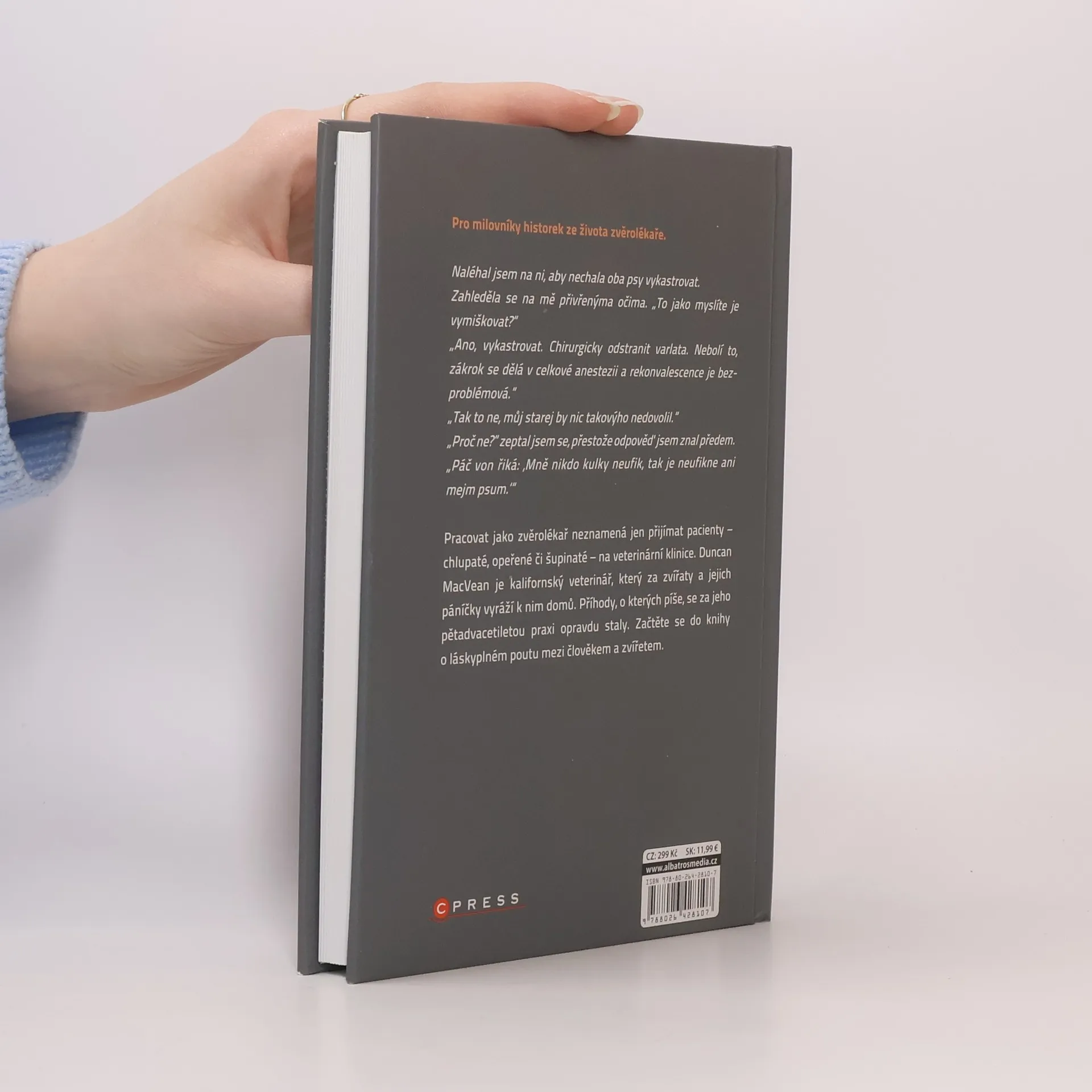 Pracovat jako zvěrolékař neznamená jen přijímat pacienty – chlupaté, opeřené či šupinaté – na veterinární klinice. Duncan MacVean je kalifornský veterinář, který za zvířaty a jejich páníčky vyráží k nim domů. Příhody, o kterých píše, se za jeho pětadvacetiletou praxi opravdu staly. Začtěte se do knihy o láskyplném poutu mezi člověkem a zvířetem.