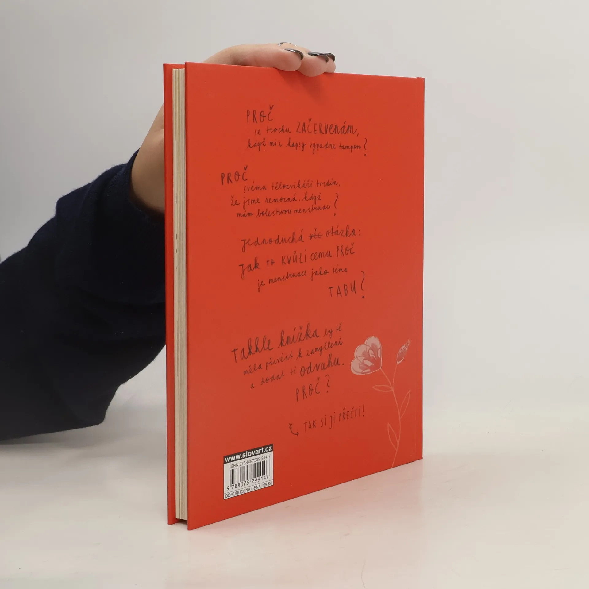 Neuvěřitelné mýty a fakta o menstruaci. Všichni vědí, co je menstruace. Každý měsíc ztratí žena trochu krve – asi tak obsah jednoho šálku espressa. Díky tomu se můžou rodit děti. A někdy při ní bolí břicho nebo panuje blbá nálada. Ale pssst, mluvit o tom je přece trapný a nechutný! Anebo ne? Mladá spisovatelka a výtvarnice nakreslila o menstruaci vtipnou knížku, ze které se dozvíte, jaké nesmysly se dříve o menstruaci povídaly, proč byly ženy považovány za špinavé, i co přesně se v tuhle dobu s tělem děje. Kniha je plná odzbrojujícího humoru a vtipných obrázků a je vhodná pro holky stejně jako pro kluky.