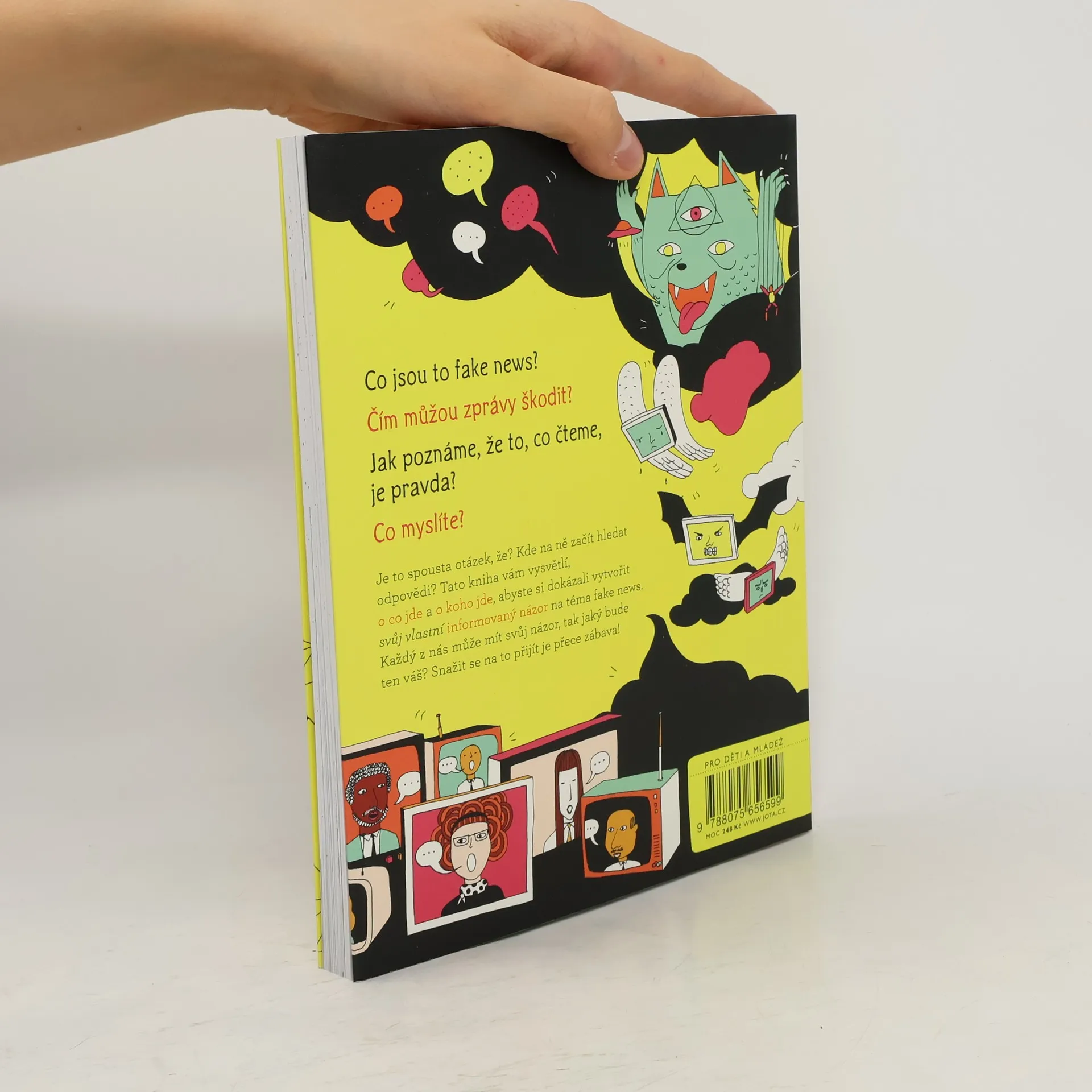 Co jsou to fake news? Čím můžou zprávy škodit? Co myslíte? Je to spousta otázek, že? Kde na ně začít hledat odpovědi? Tato kniha vám vysvětlí, o co jde a o koho jde, abyste si dokázali vytvořit svůj vlastní informovaný názor na téma fake news. Každý z nás může mít svůj názor, tak jaký bude ten váš? Snažit se na to přijít je přece zábava! Co to vlastně jsou ty fake news? Jak můžou zprávy klamat? A jak poznáme, jestli to, co čteme, je pravda, nebo ne? Tentokrát se zaměříme na pojem fake news a na média jako taková. Prozkoumejte, co je v sázce, když se řekne „fake news“. Knižní série O co jde? vás vyzbrojí vědomostmi, díky nimž dokážete obhájit své argumenty a své přesvědčení s jistotou. Každý z nás může mít svůj názor, tak ať je ten váš opřený o informace. Série se zabývá napínavými tématy mnoha článků a veřejných debat, nad kterými jistě stojí za to se zamyslet. Ptá se, „proč se vlastně kolem toho dělá takový povyk“, předkládá klíčová fakta a zkoumá to, co je dobré i špatné na každém případu. V těchto knihách najdou mladí čtenáři vše, co potřebují vědět o současných důležitých tématech, a budou si tak moci vytvořit svůj vlastní názor.